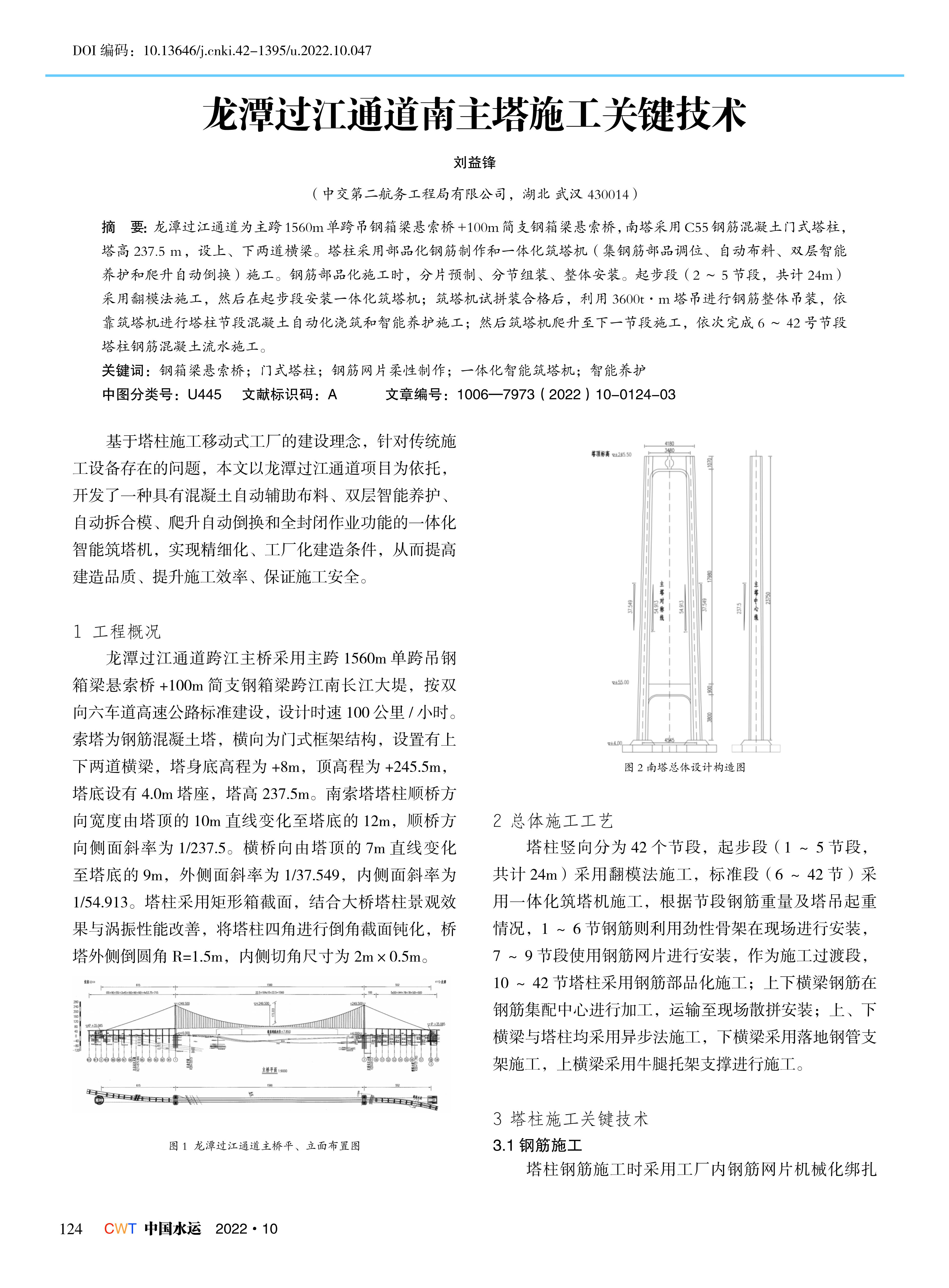 龙潭过江通道南主塔施工关键技术