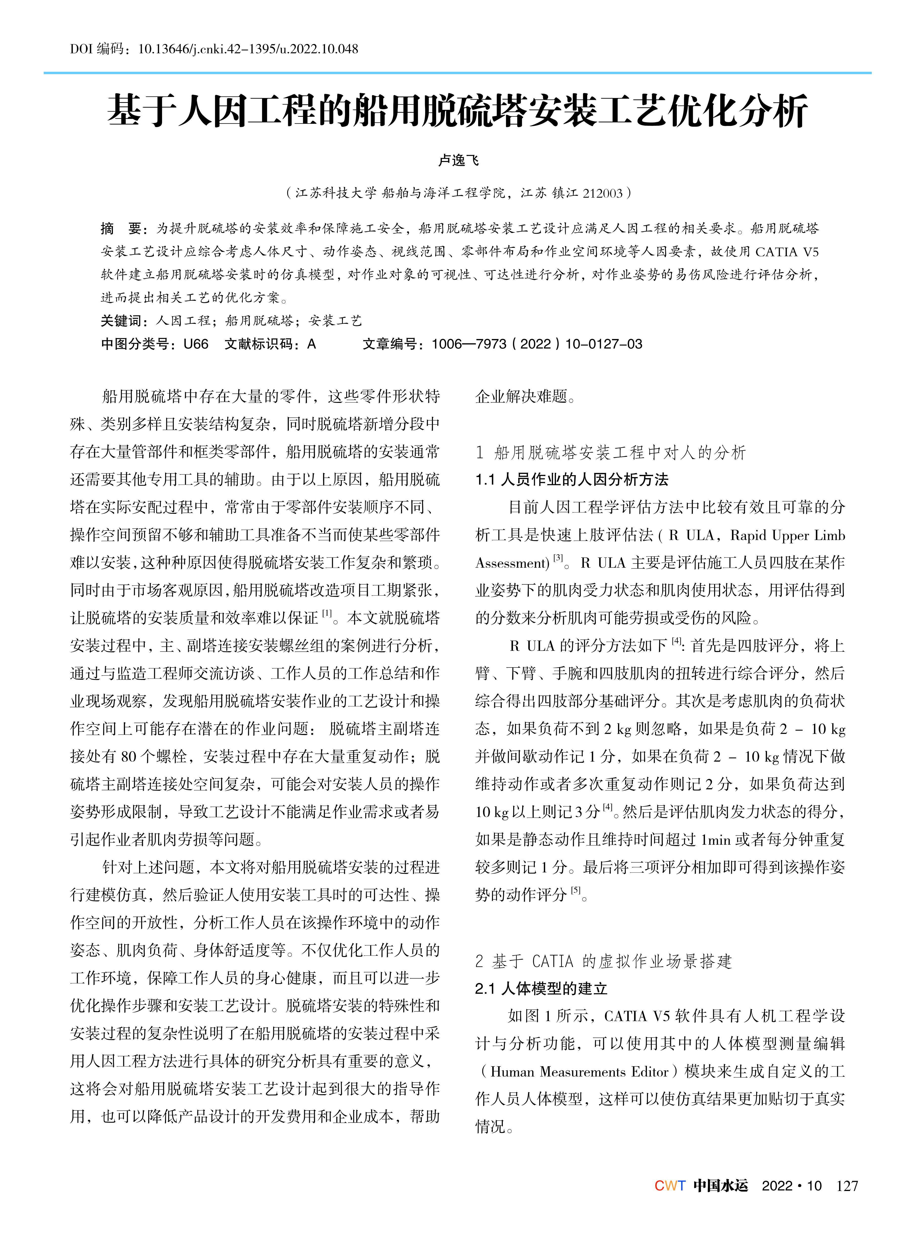 基于人因工程的船用脱硫塔安装工艺优化分析