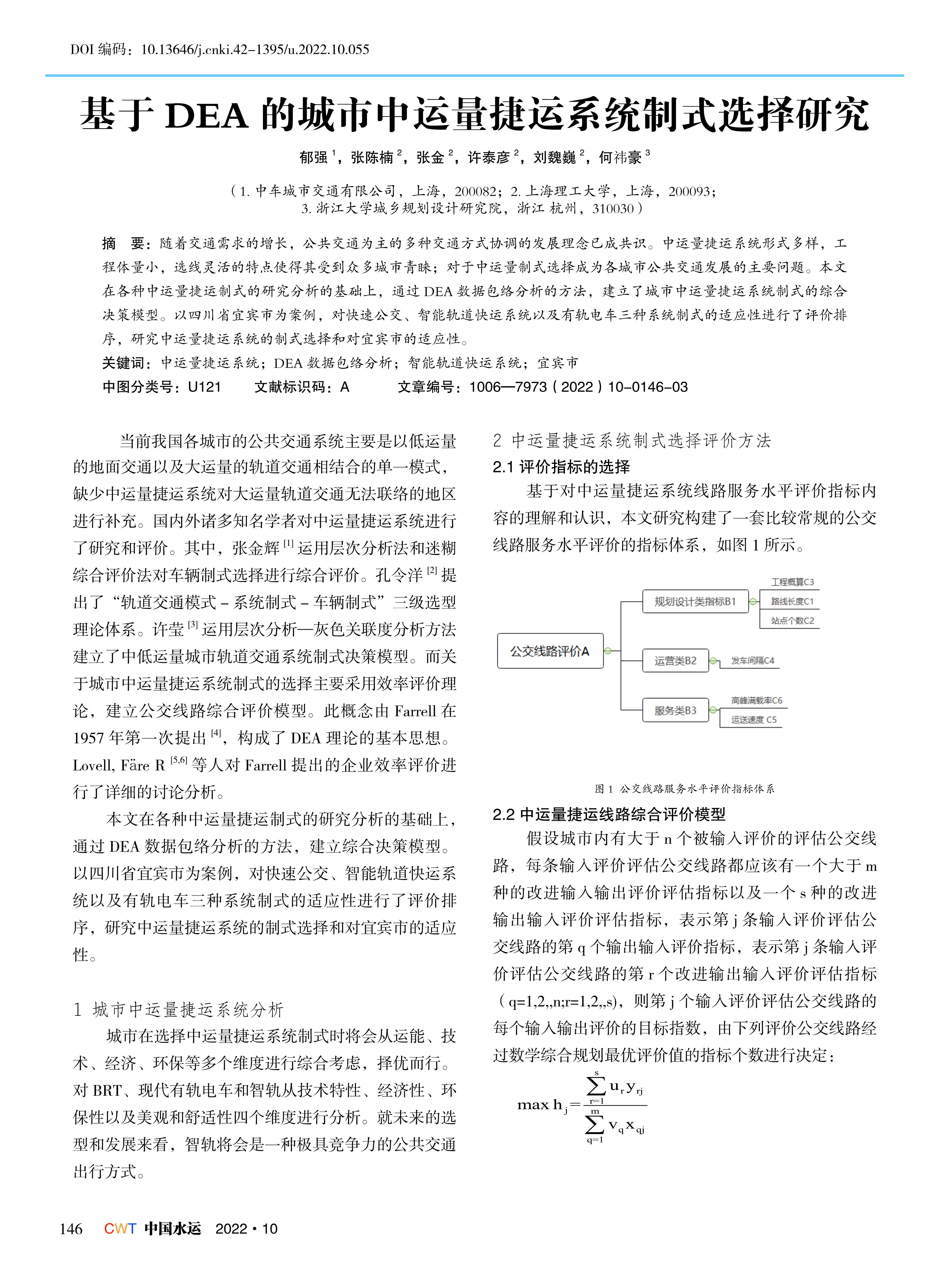 基于 DEA 的城市中运量捷运系统制式选择研究
