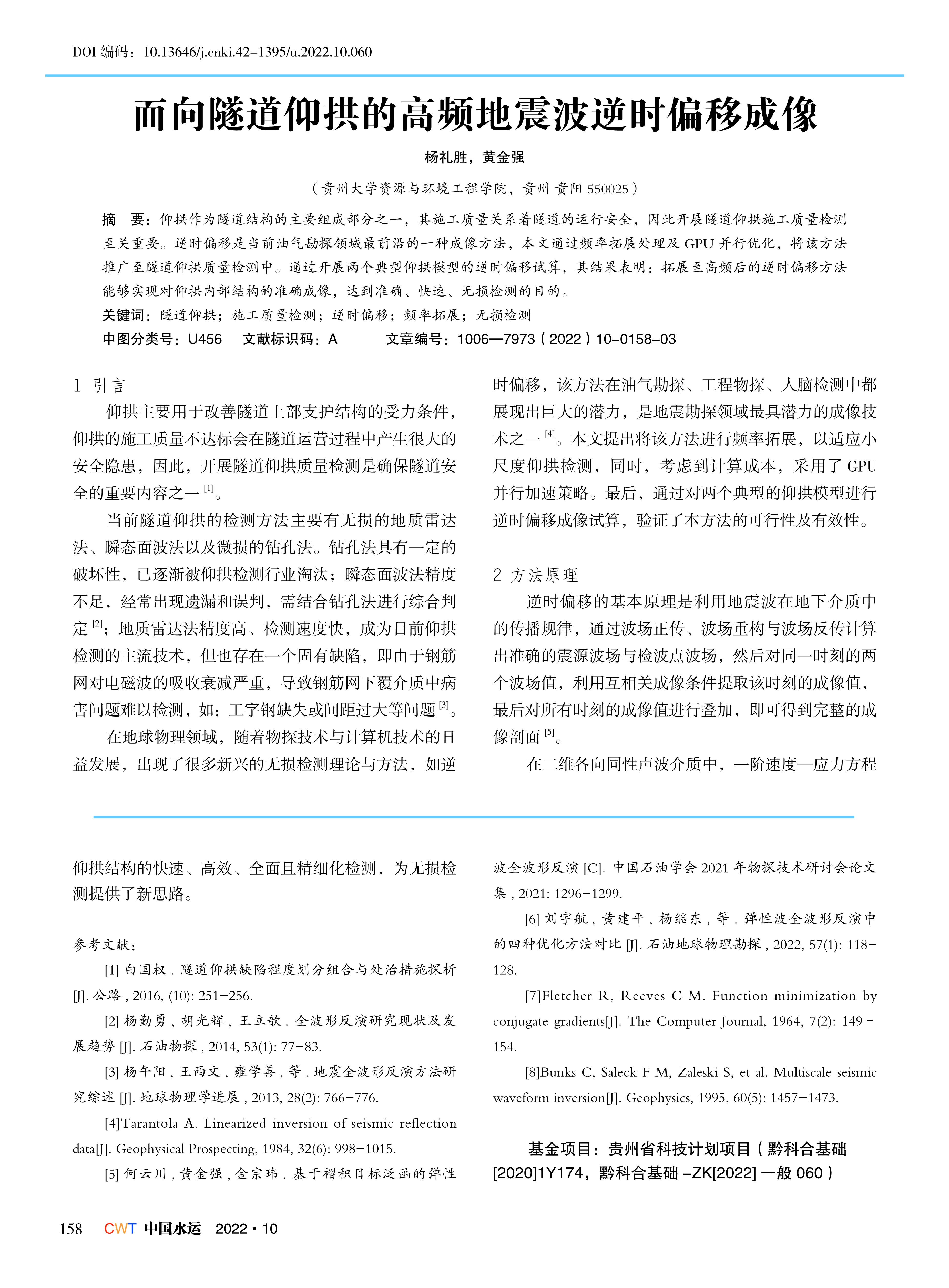 面向隧道仰拱的高频地震波逆时偏移成像