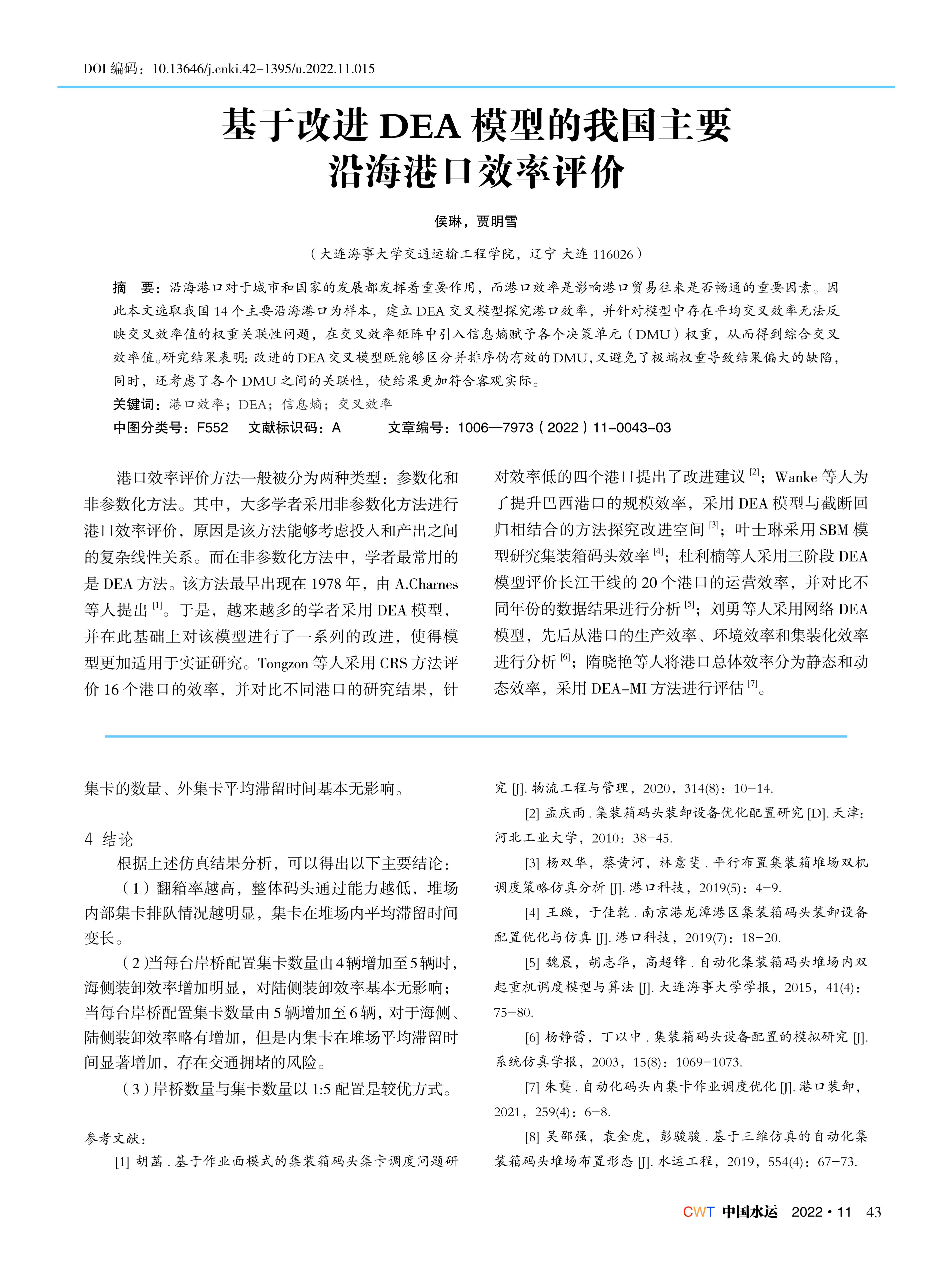 基于改进 DEA 模型的我国主要沿海港口效率评价