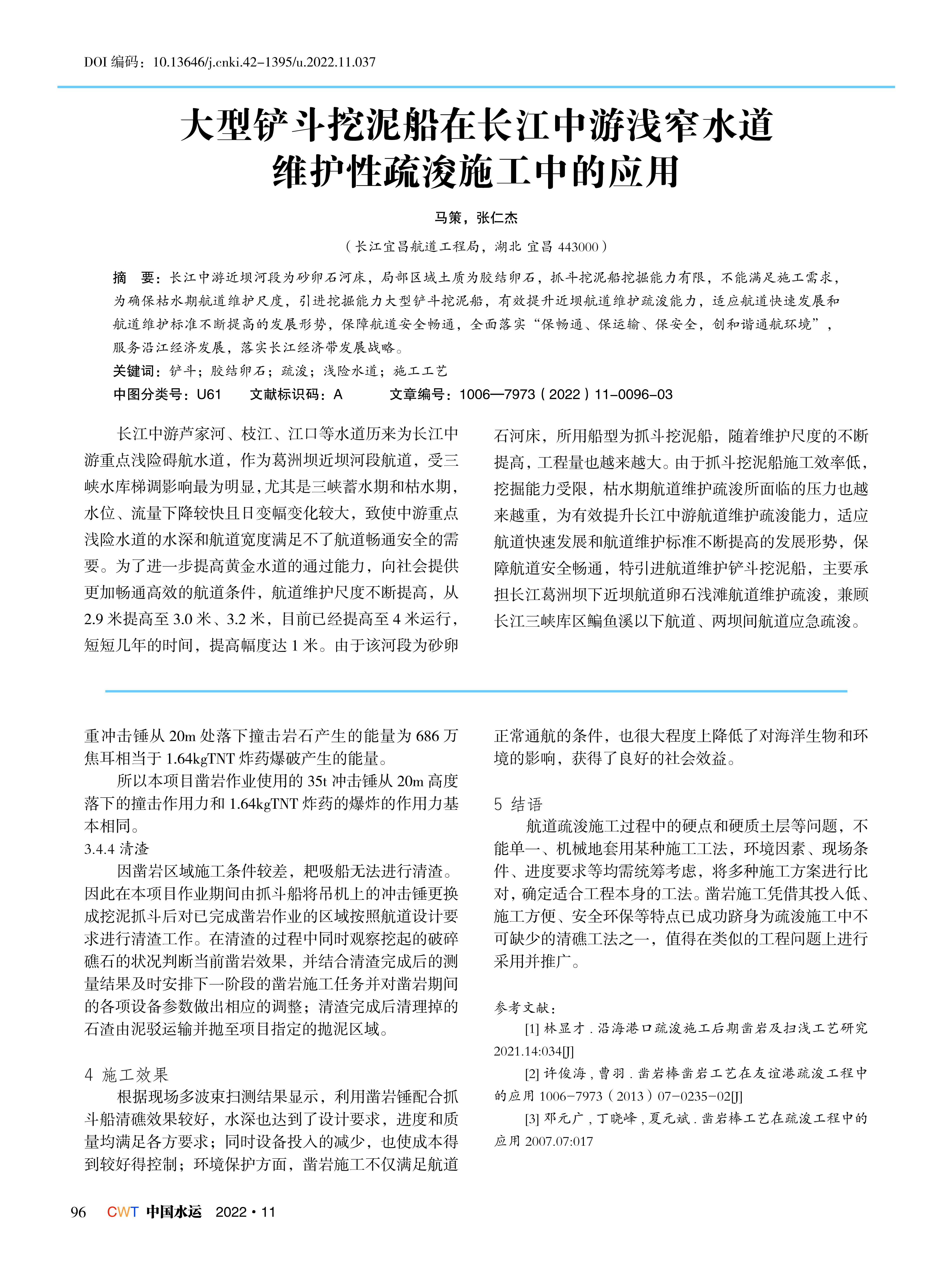 大型铲斗挖泥船在长江中游浅窄水道维护性疏浚施工中的应用