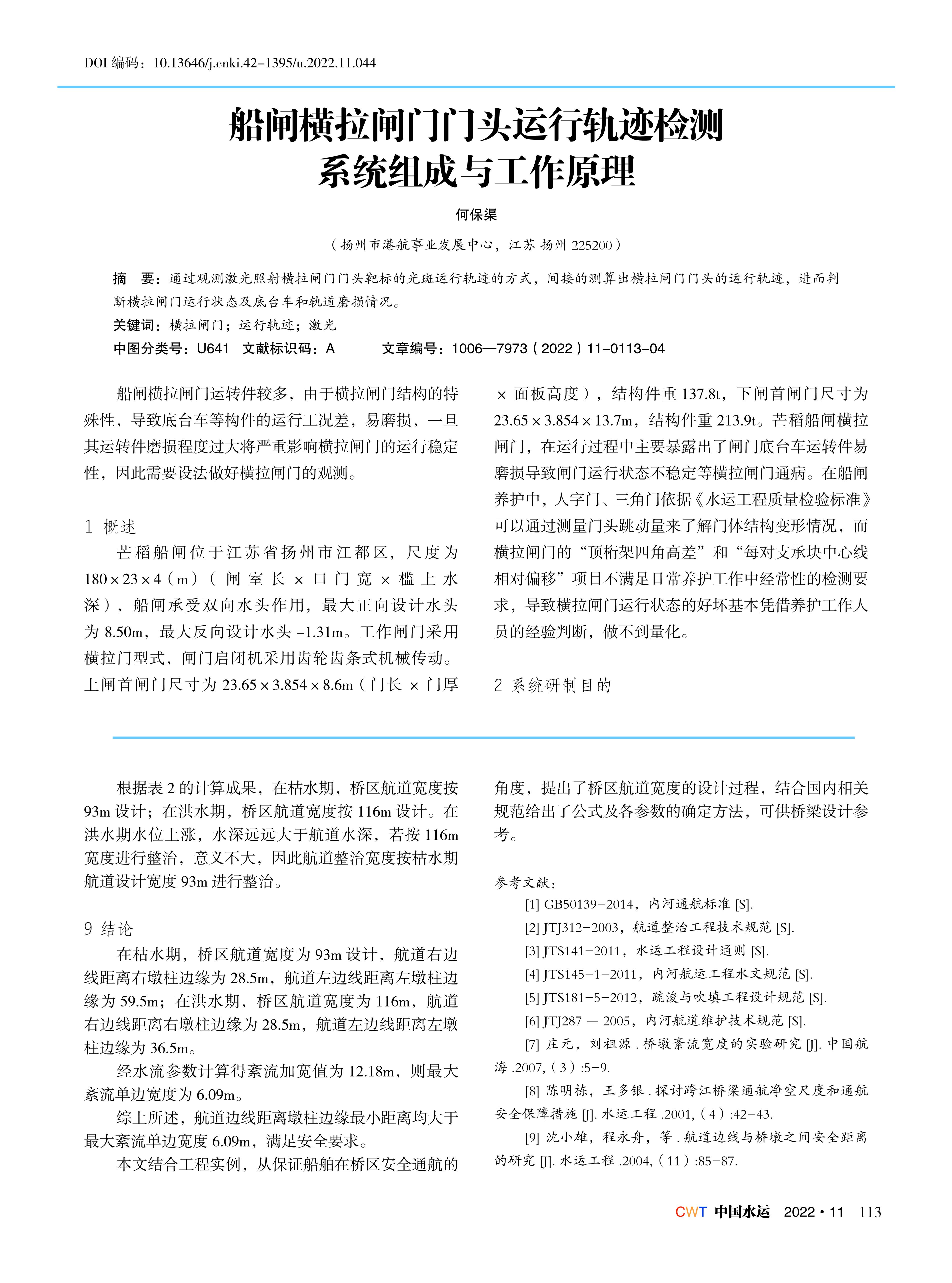 船闸横拉闸门门头运行轨迹检测系统组成与工作原理