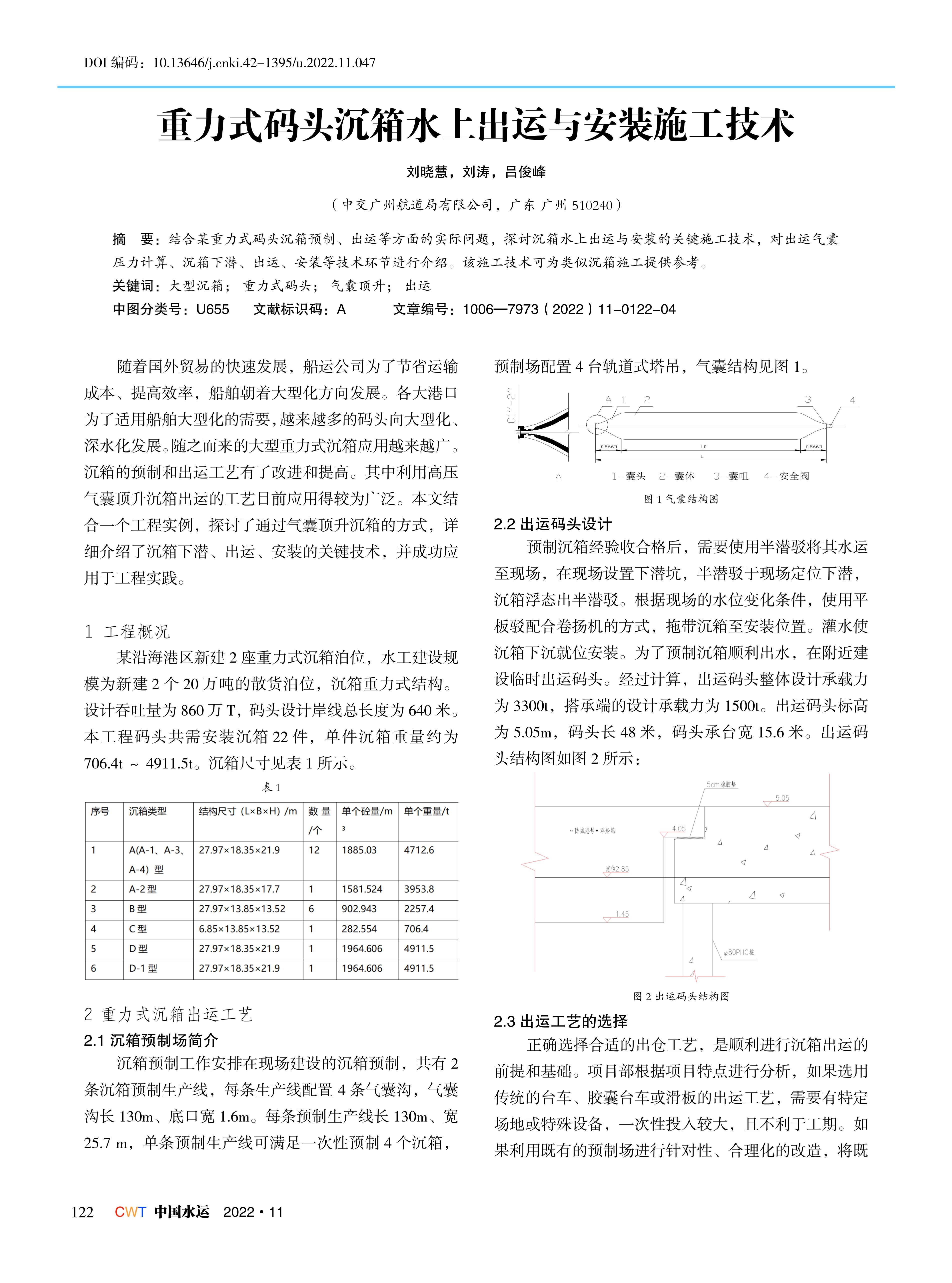 重力式码头沉箱水上出运与安装施工技术