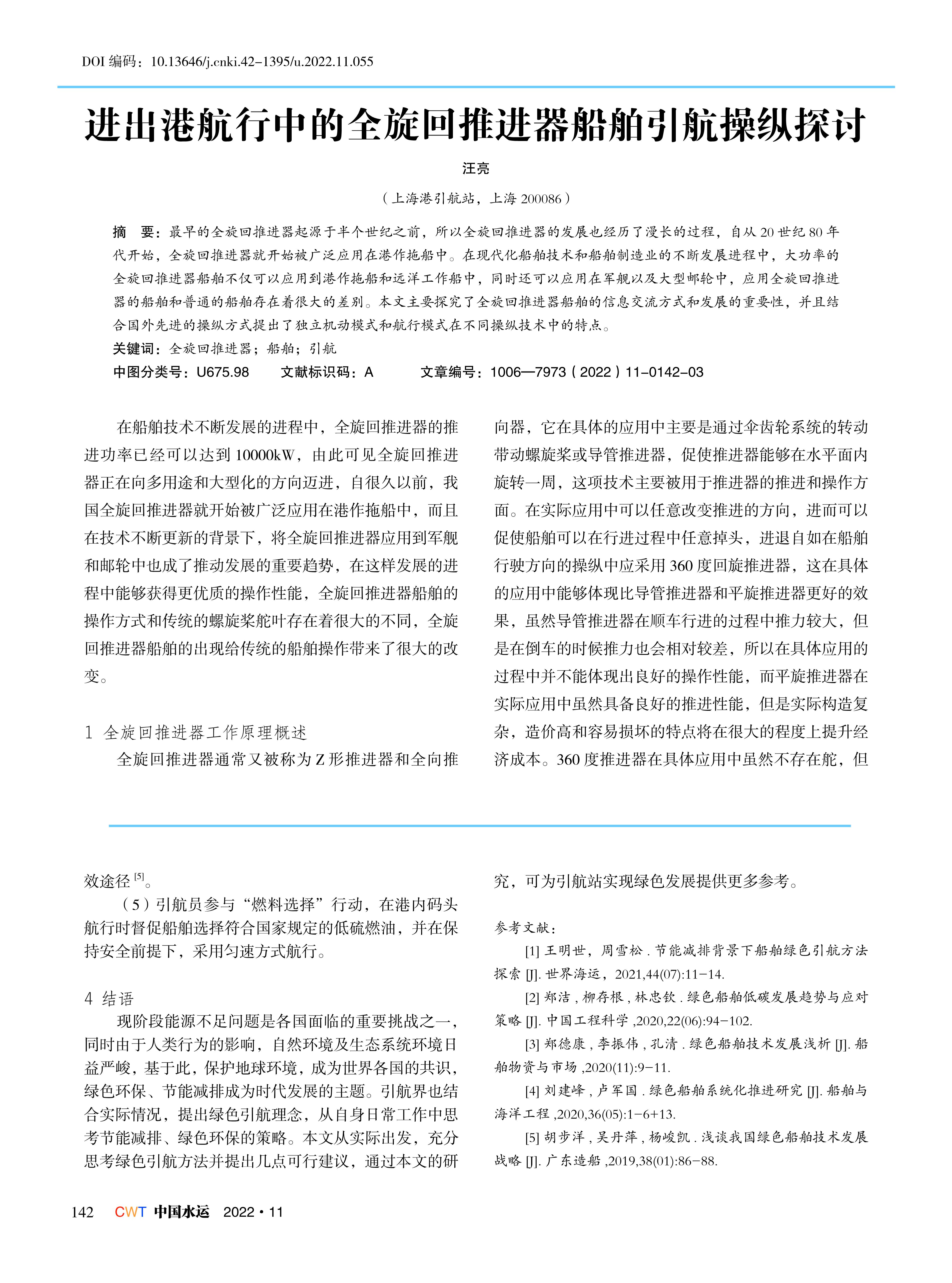 进出港航行中的全旋回推进器船舶引航操纵探讨