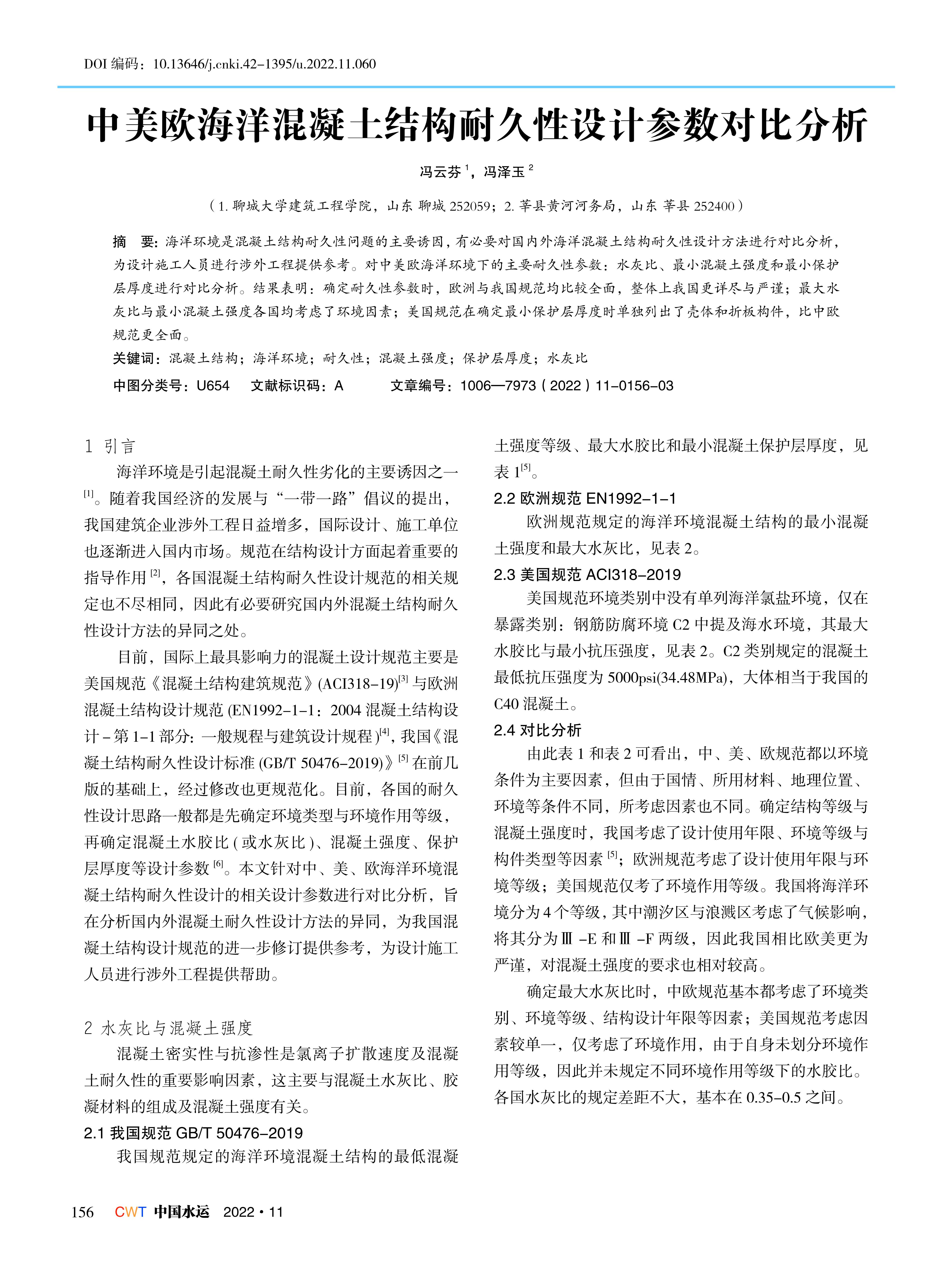 中美欧海洋混凝土结构耐久性设计参数对比分析