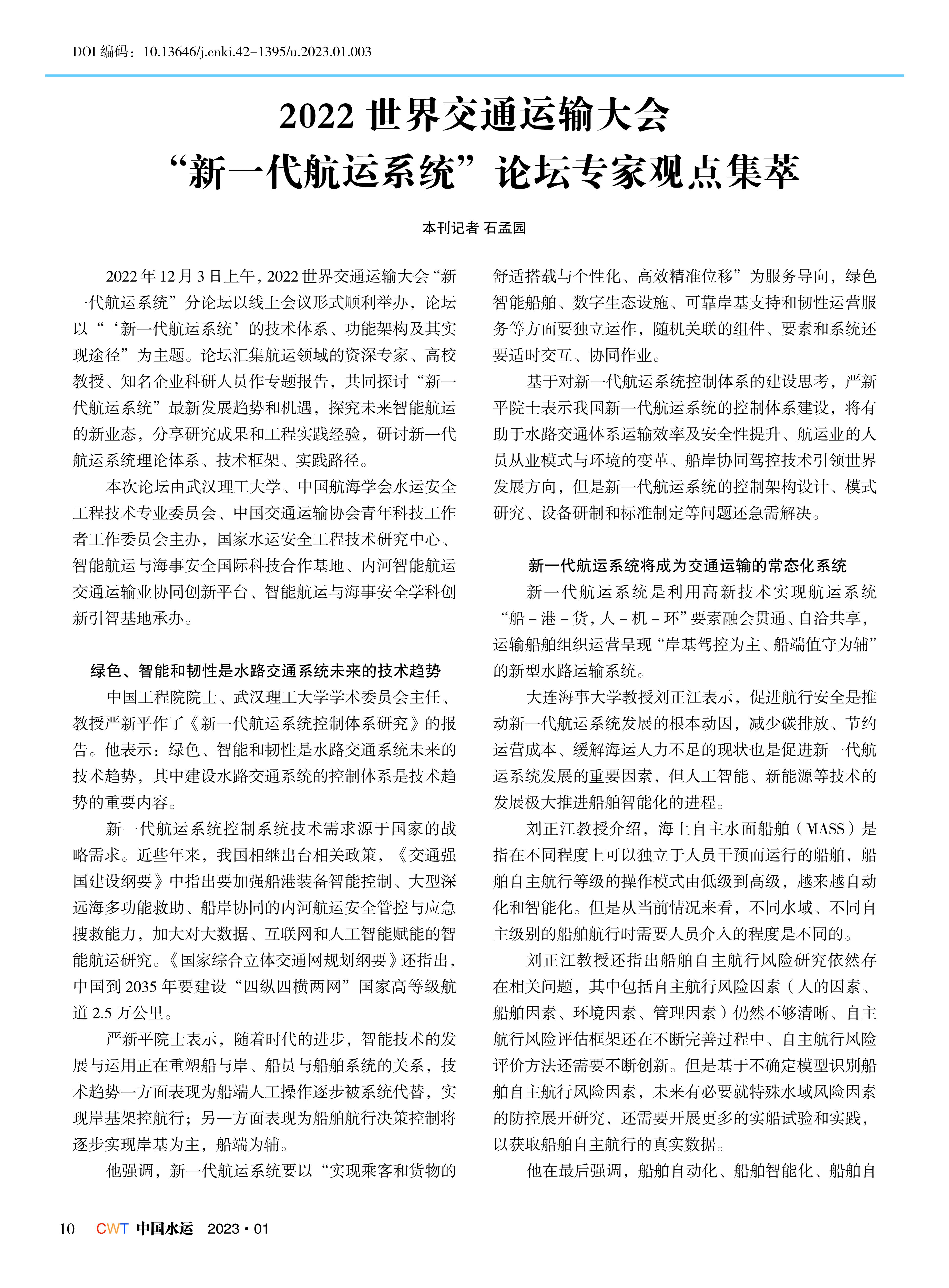 2022世界交通运输大会“新一代航运系统”论坛专家观点集萃