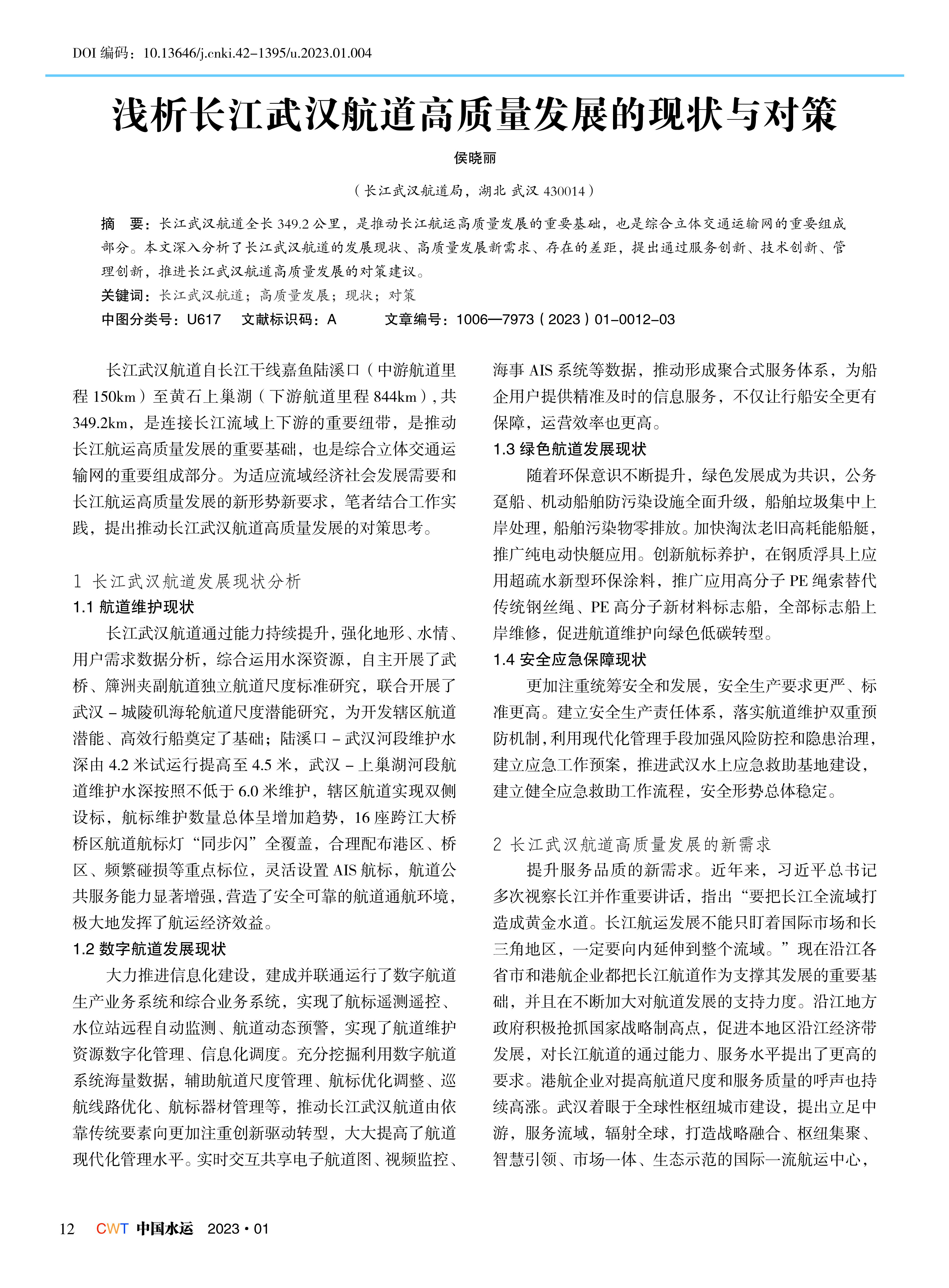 浅析长江武汉航道高质量发展的现状与对策