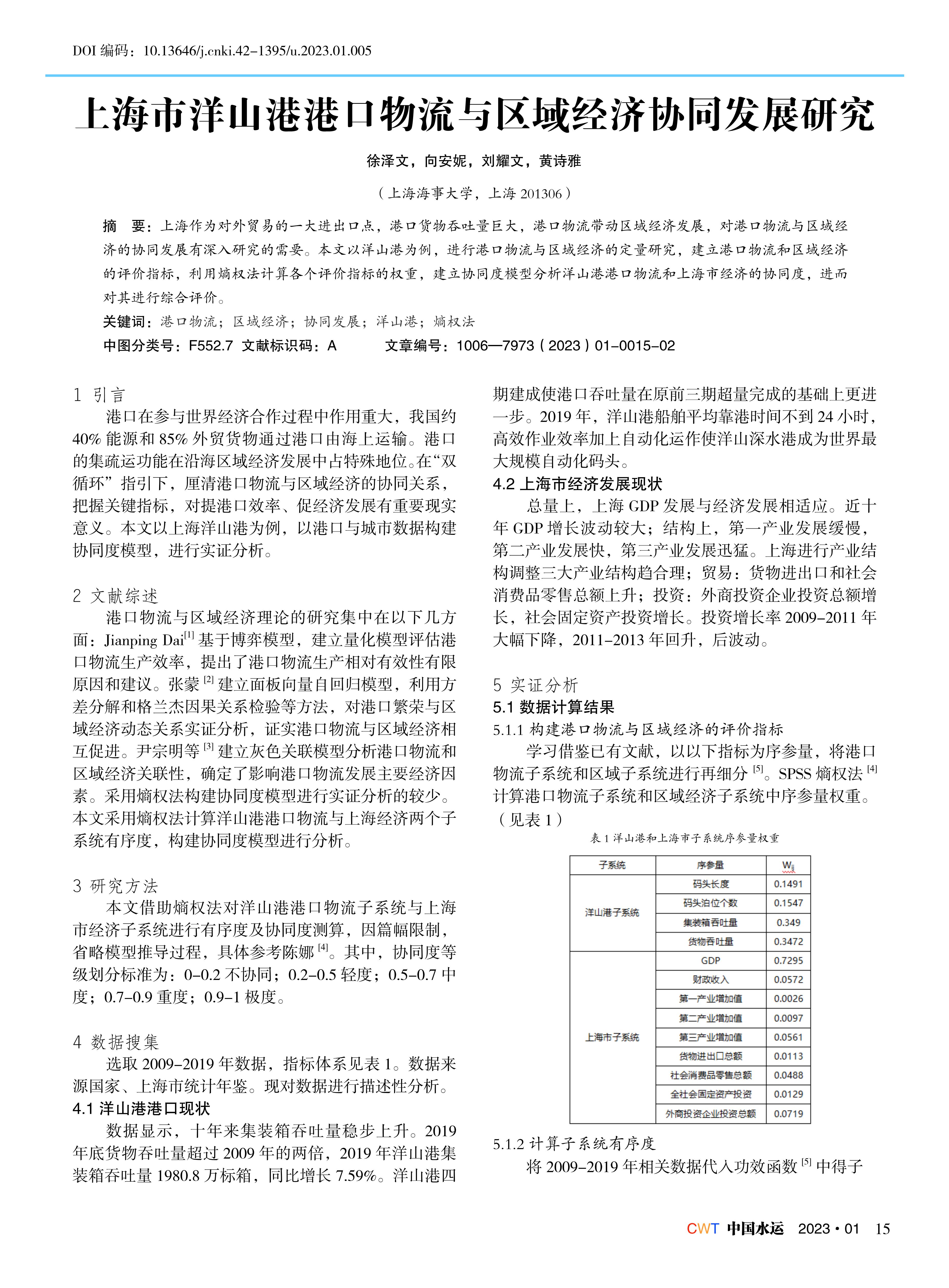 上海市洋山港港口物流与区域经济协同发展研究