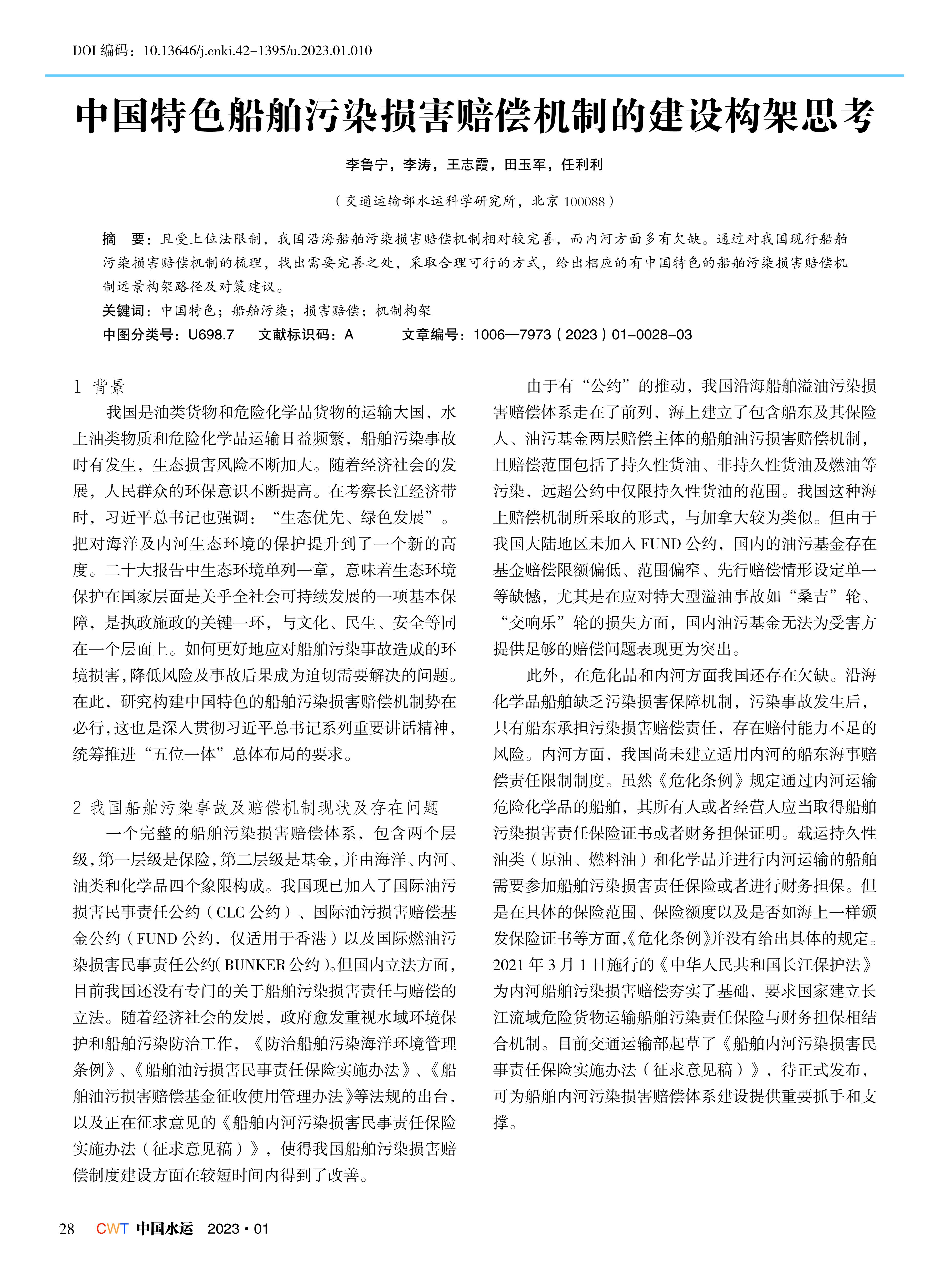 中国特色船舶污染损害赔偿机制的建设构架思考
