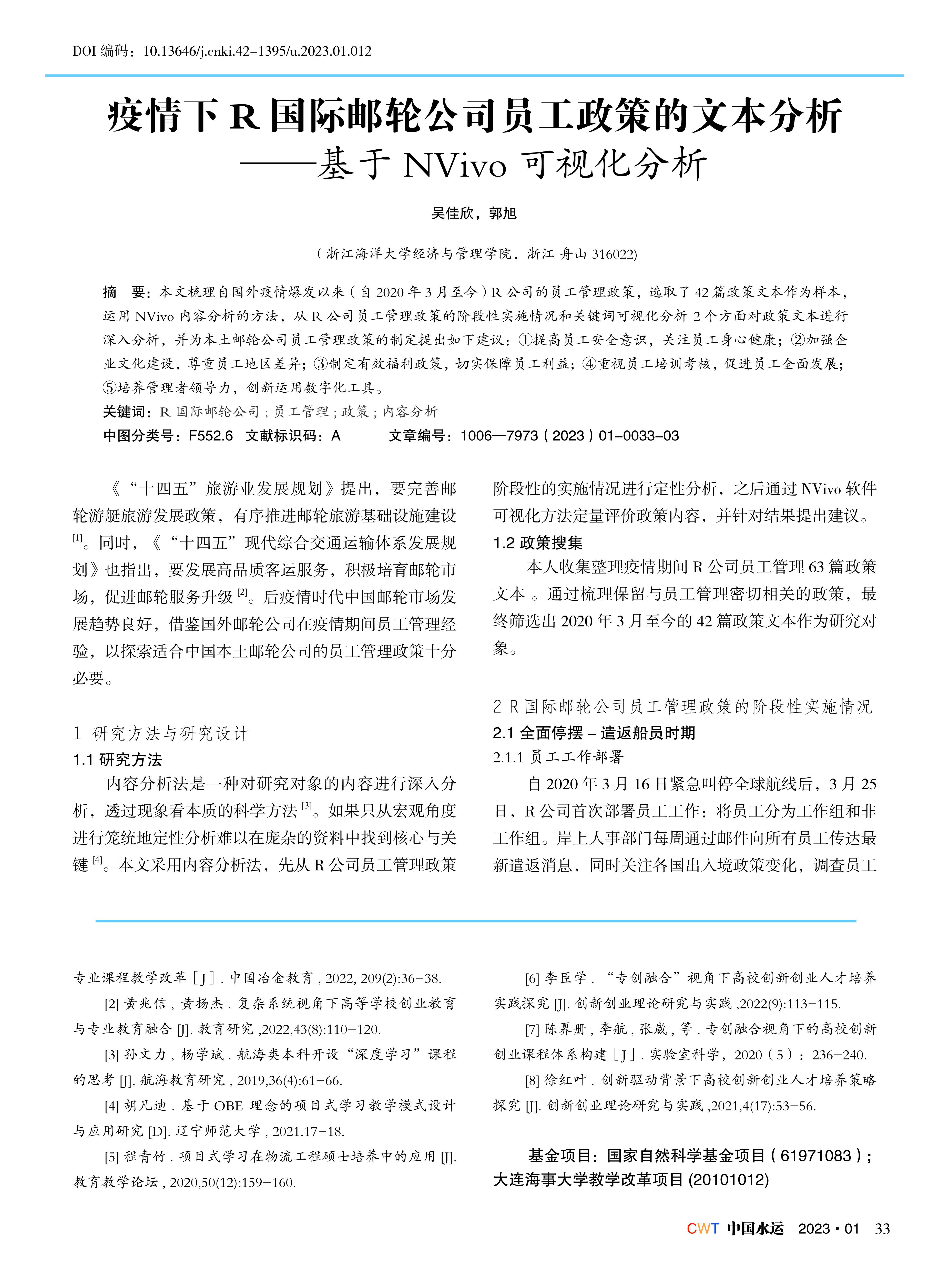 疫情下R国际邮轮公司员工政策的文本分析——基于NVivo可视化分析