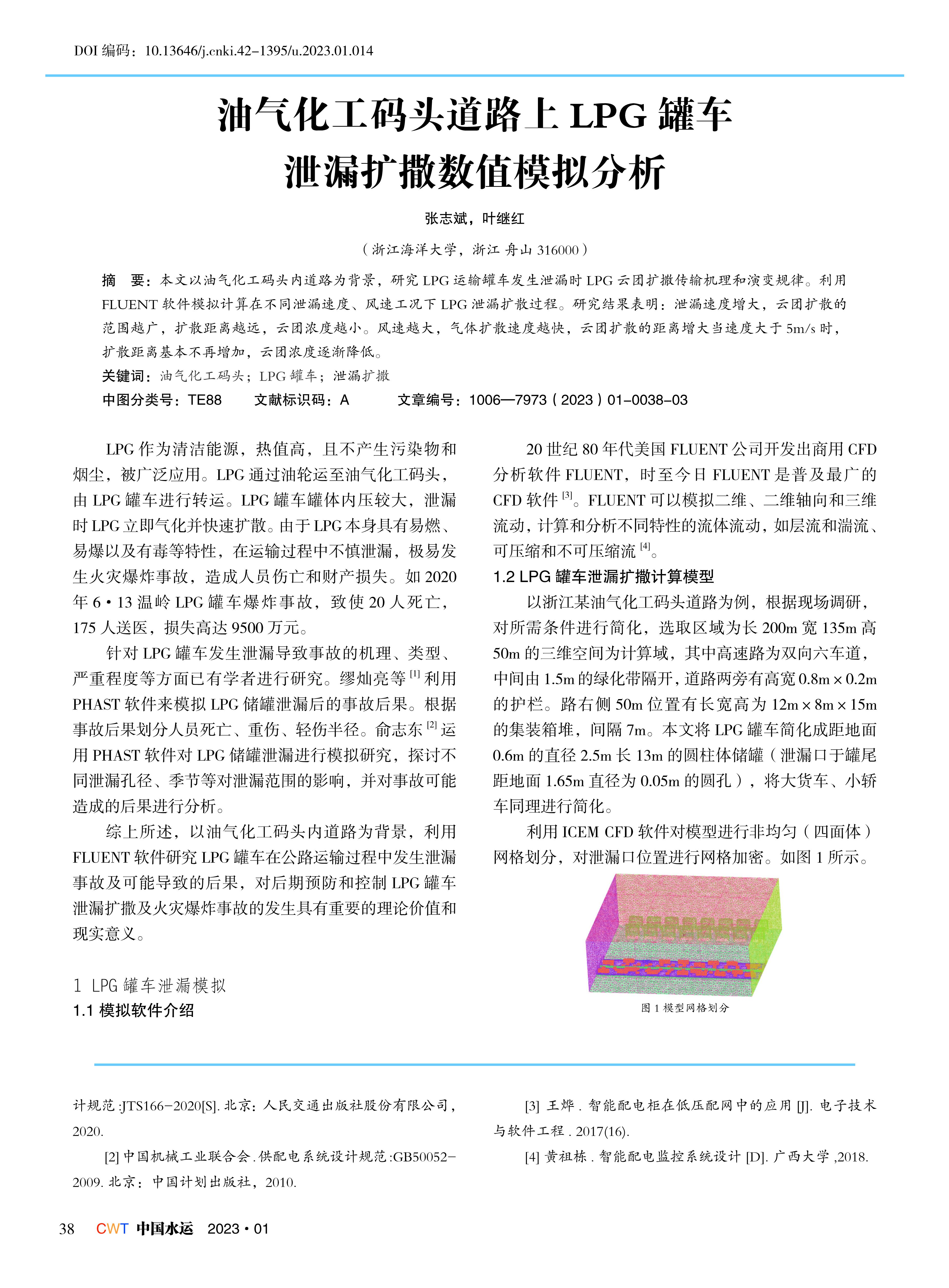 油气化工码头道路上LPG罐车泄漏扩撒数值模拟分析