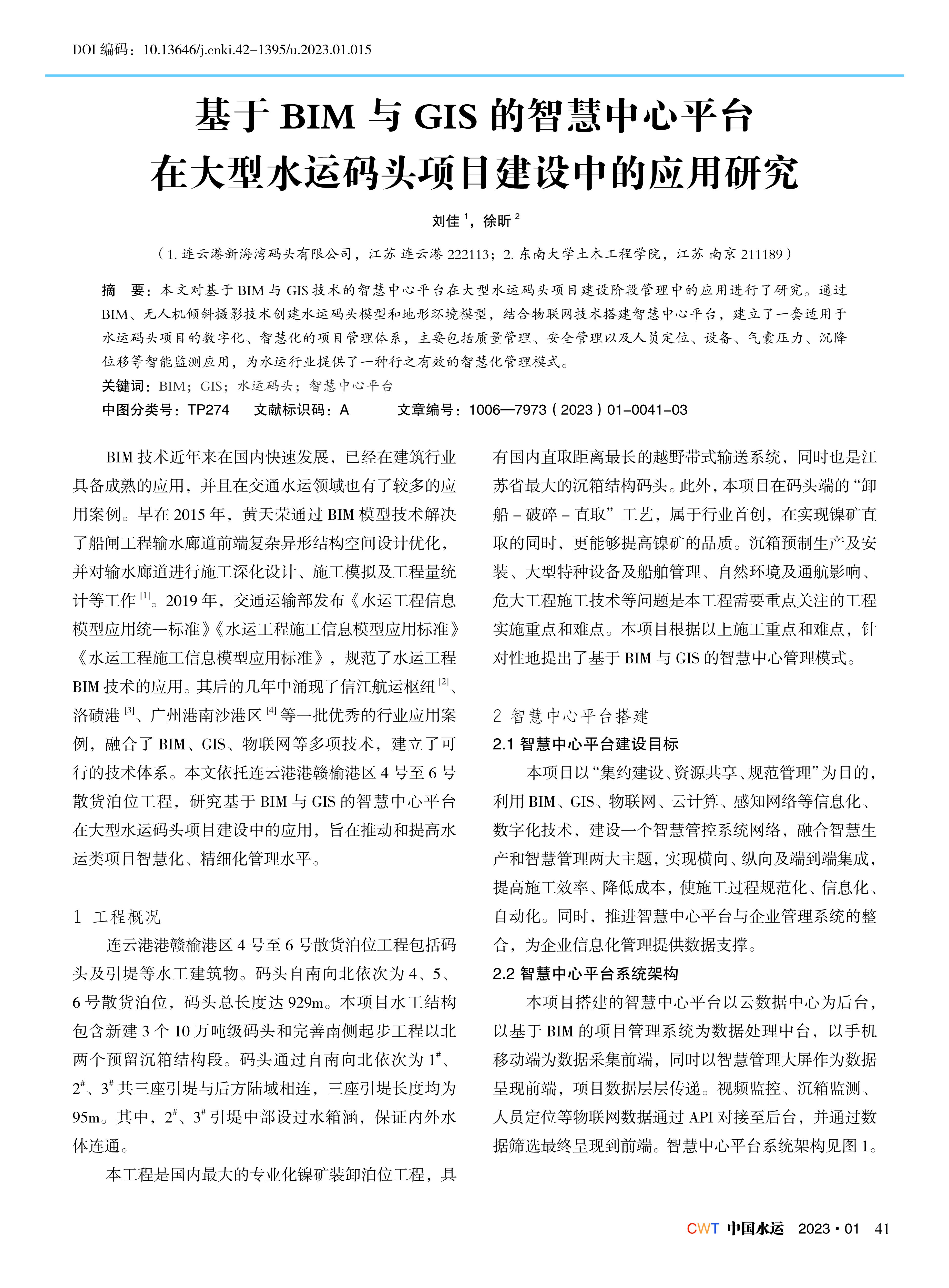 基于BIM与GIS的智慧中心平台在大型水运码头项目建设中的应用研究