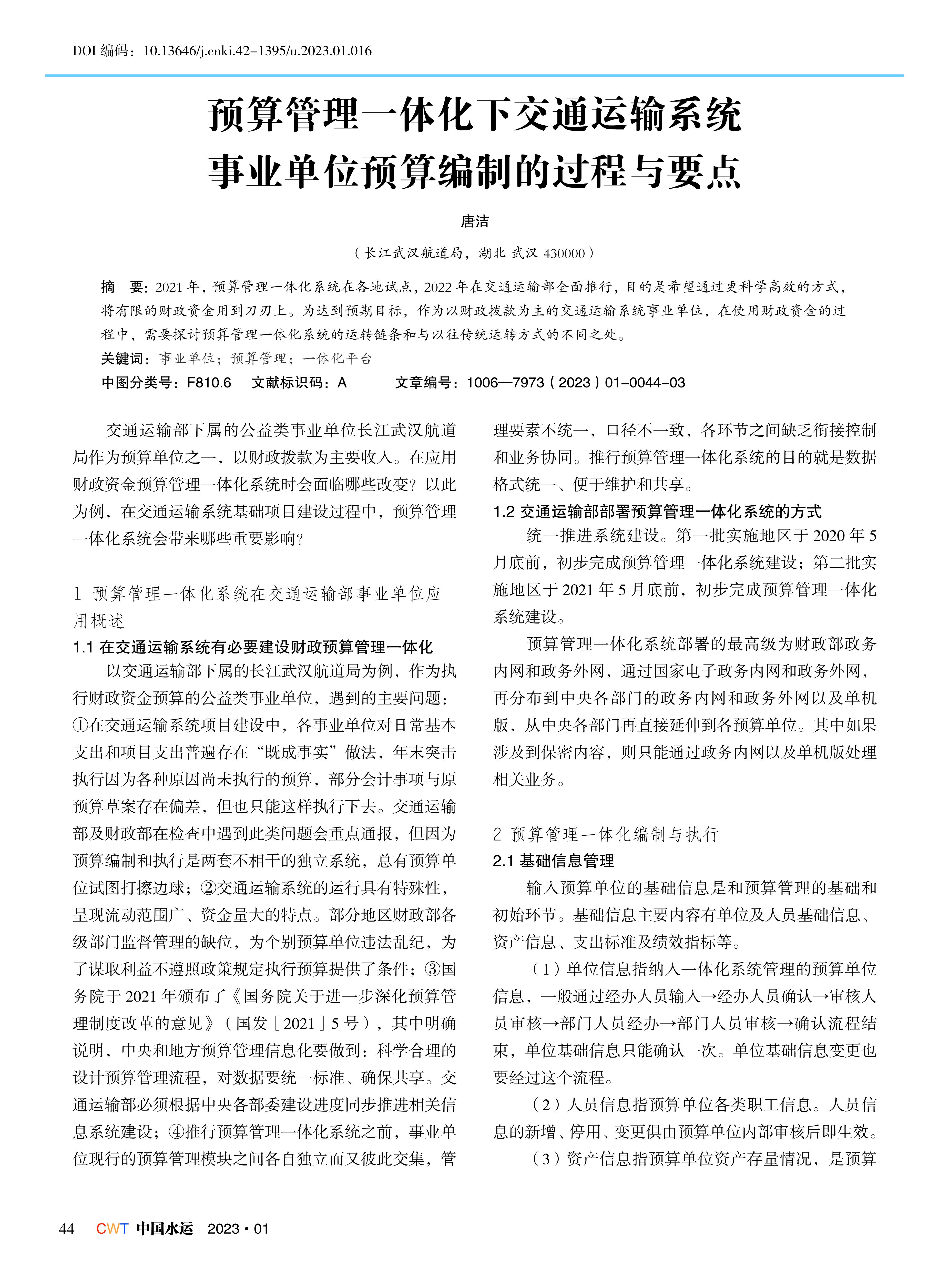 预算管理一体化下交通运输系统事业单位预算编制的过程与要点