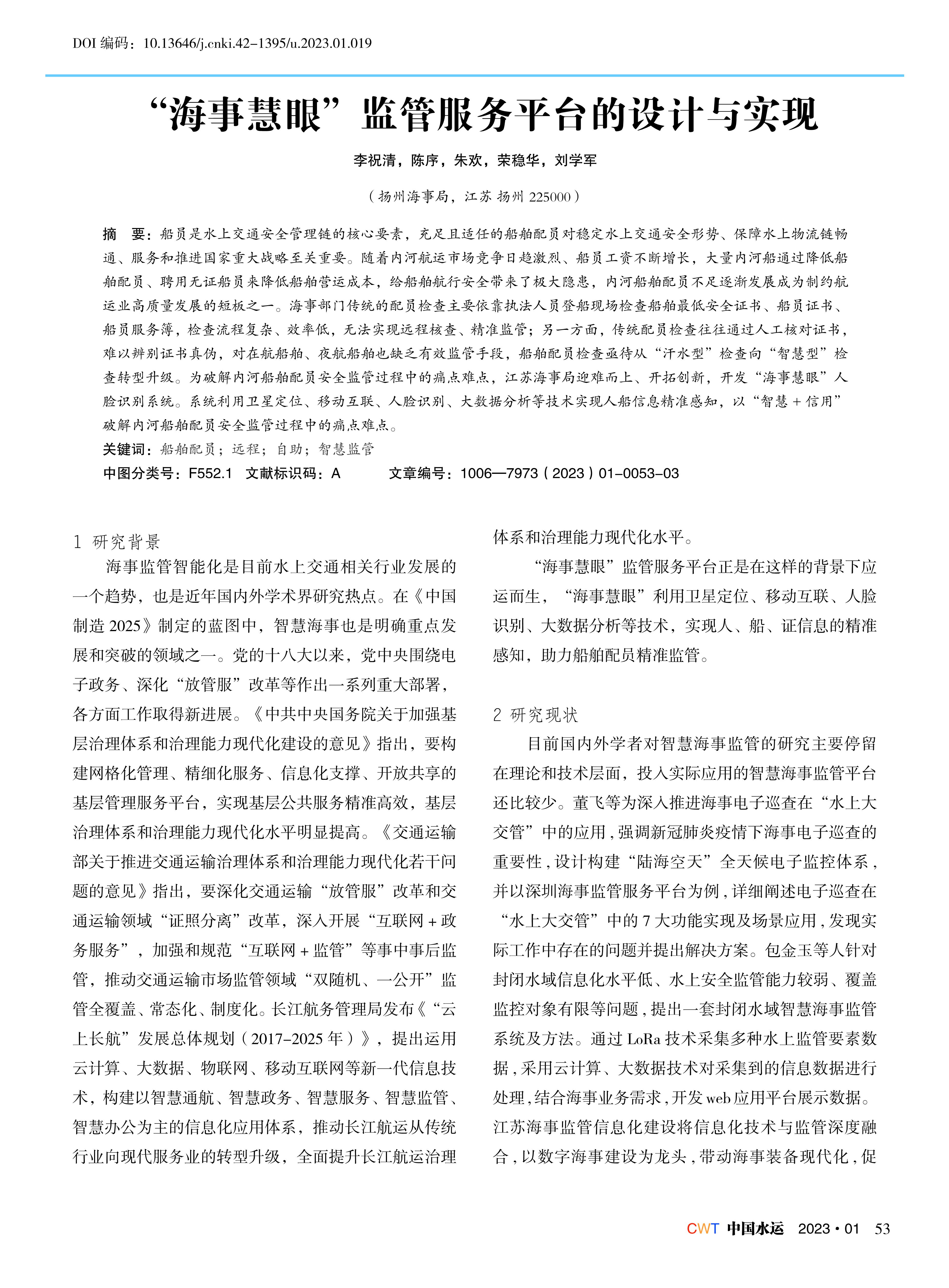 “海事慧眼”监管服务平台的设计与实现