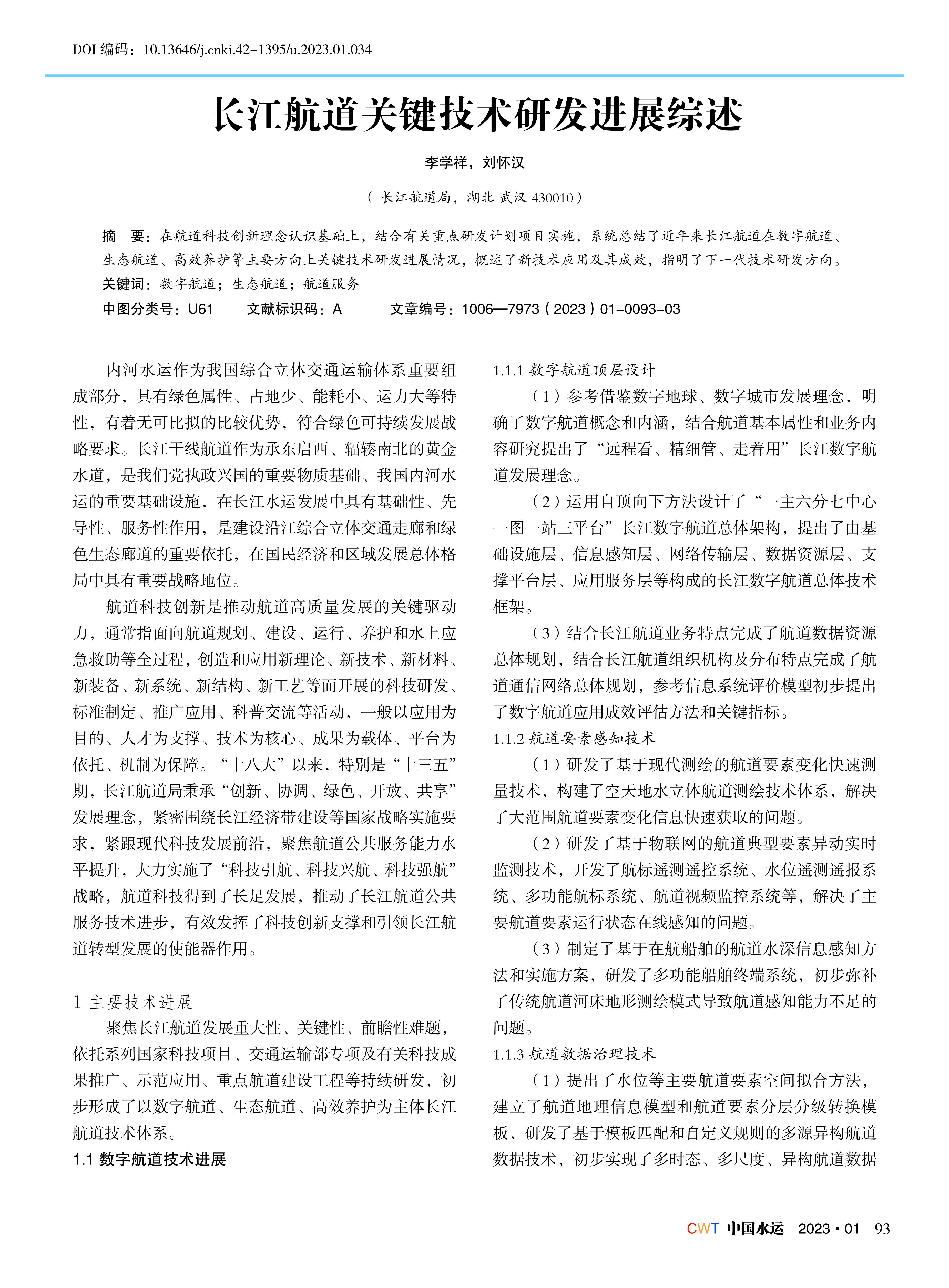 长江航道关键技术研发进展综述