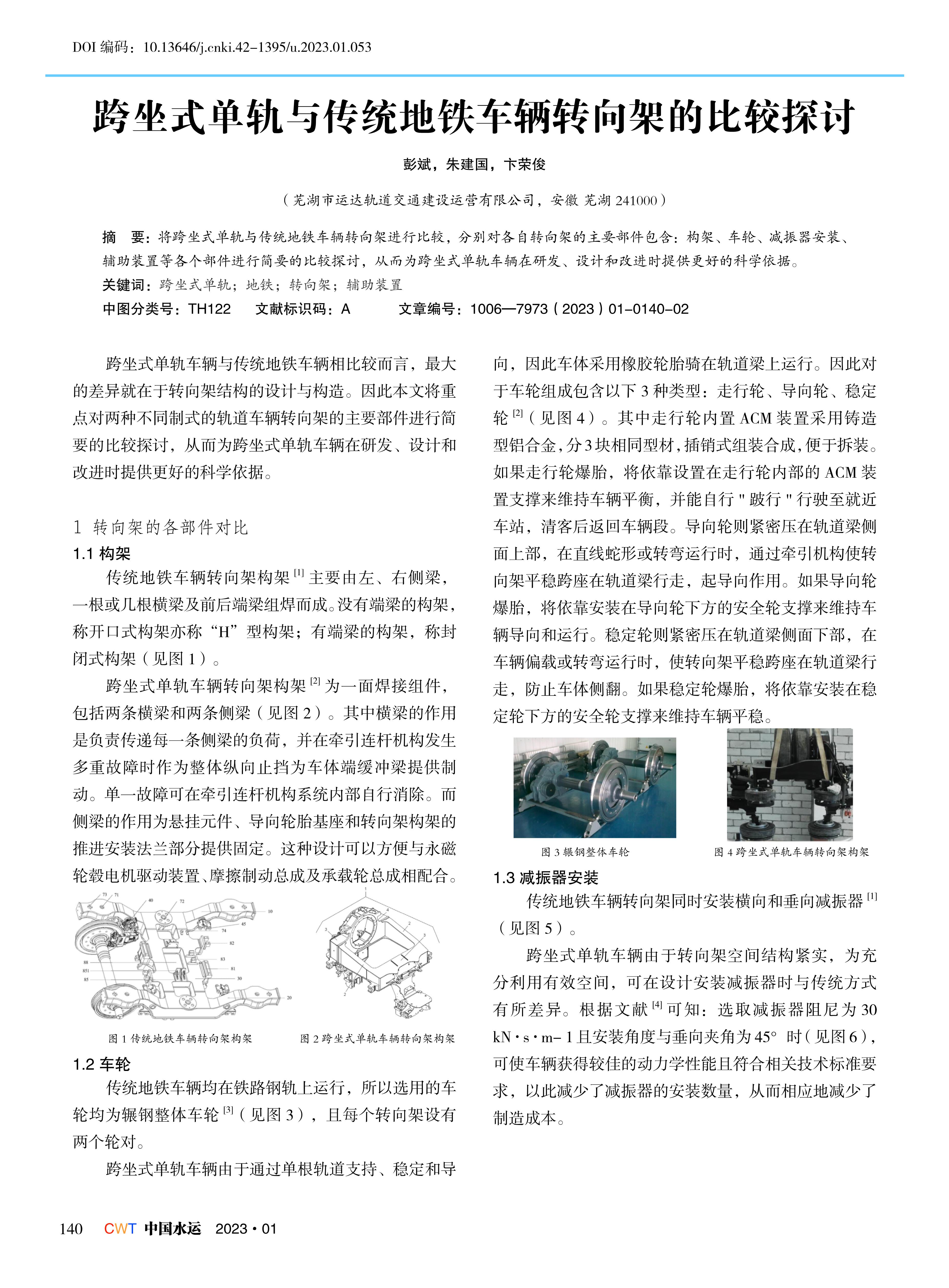 跨坐式单轨与传统地铁车辆转向架的比较探讨