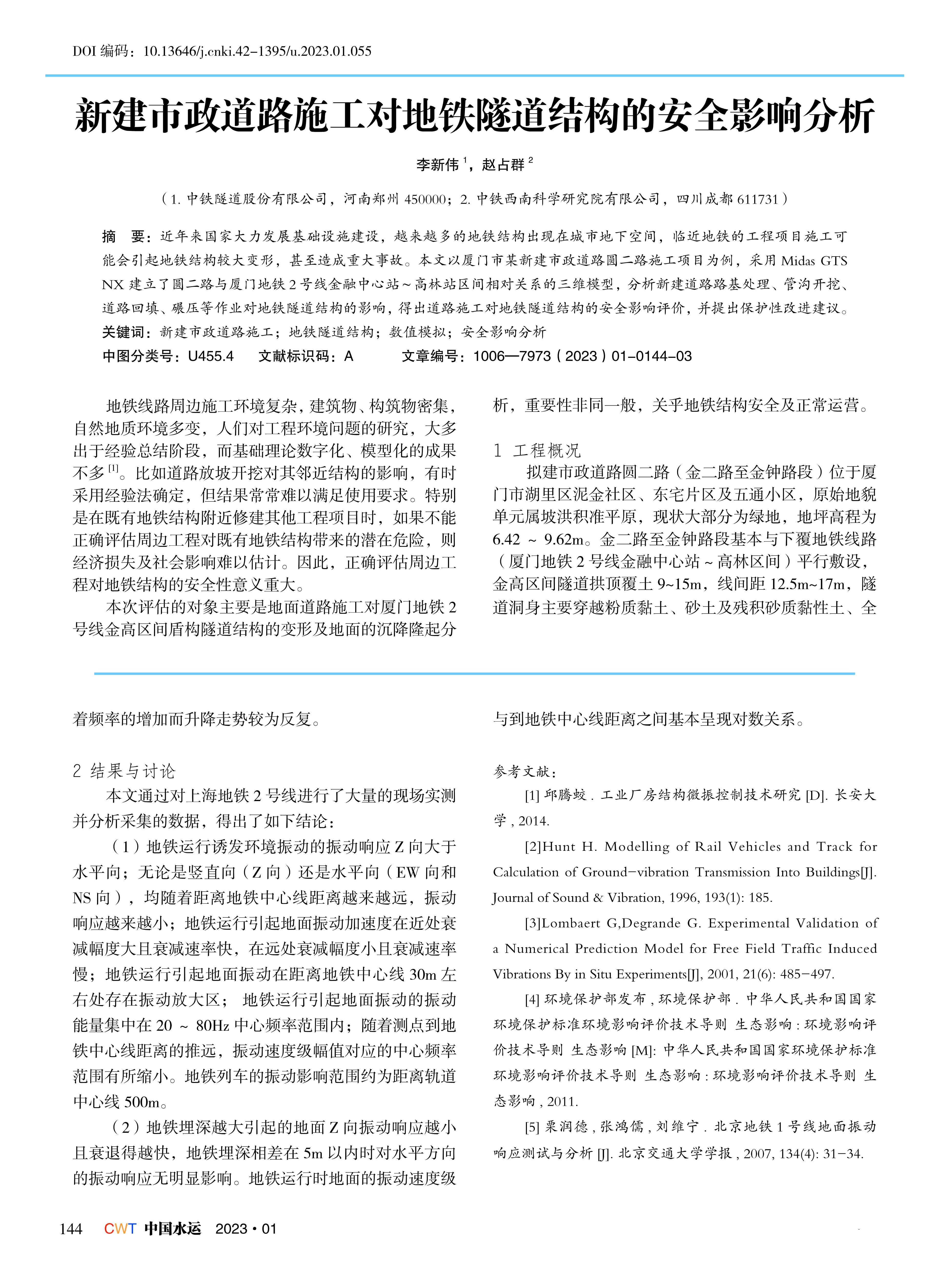 新建市政道路施工对地铁隧道结构的安全影响分析