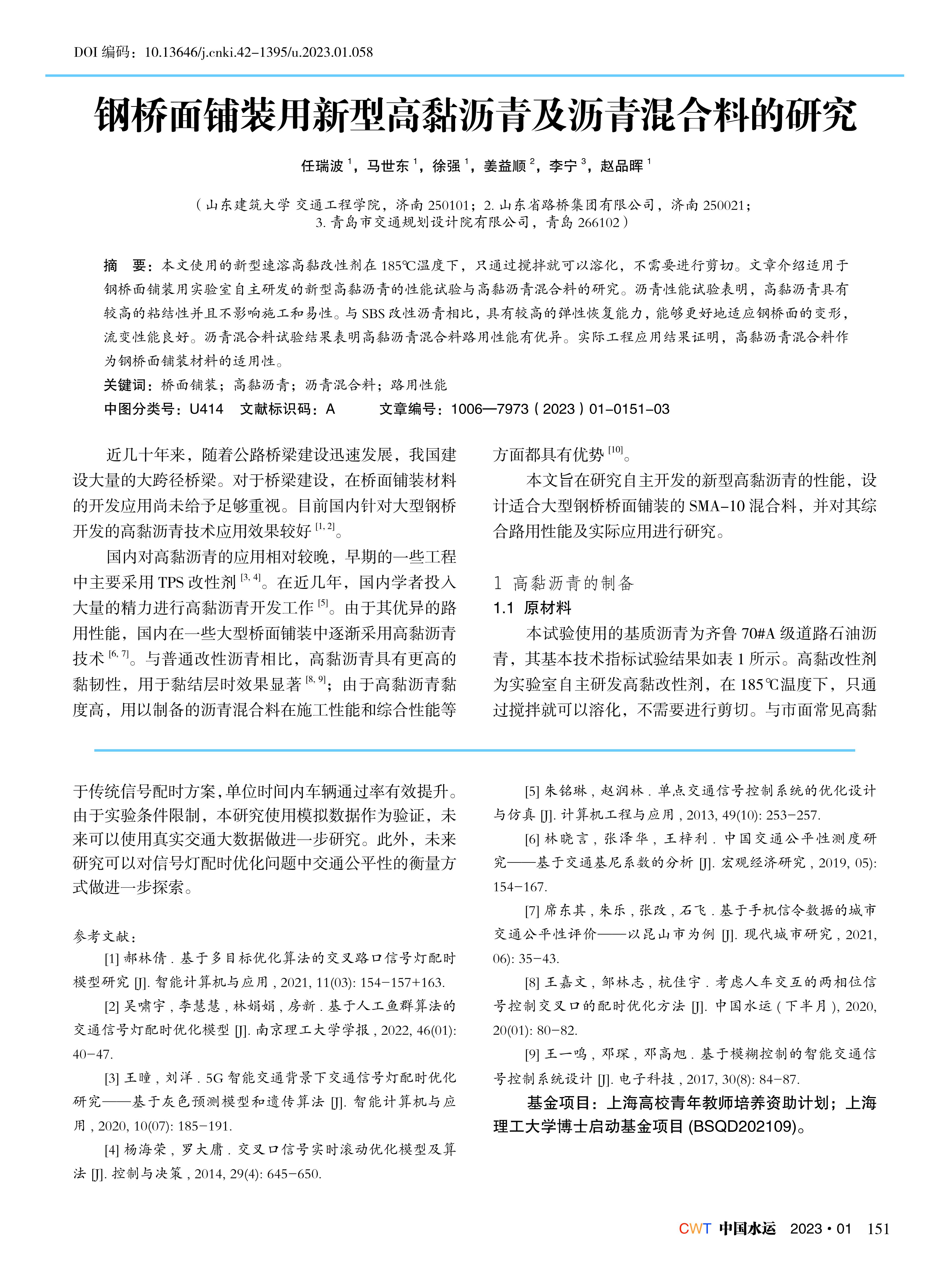 钢桥面铺装用新型高黏沥青及沥青混合料的研究