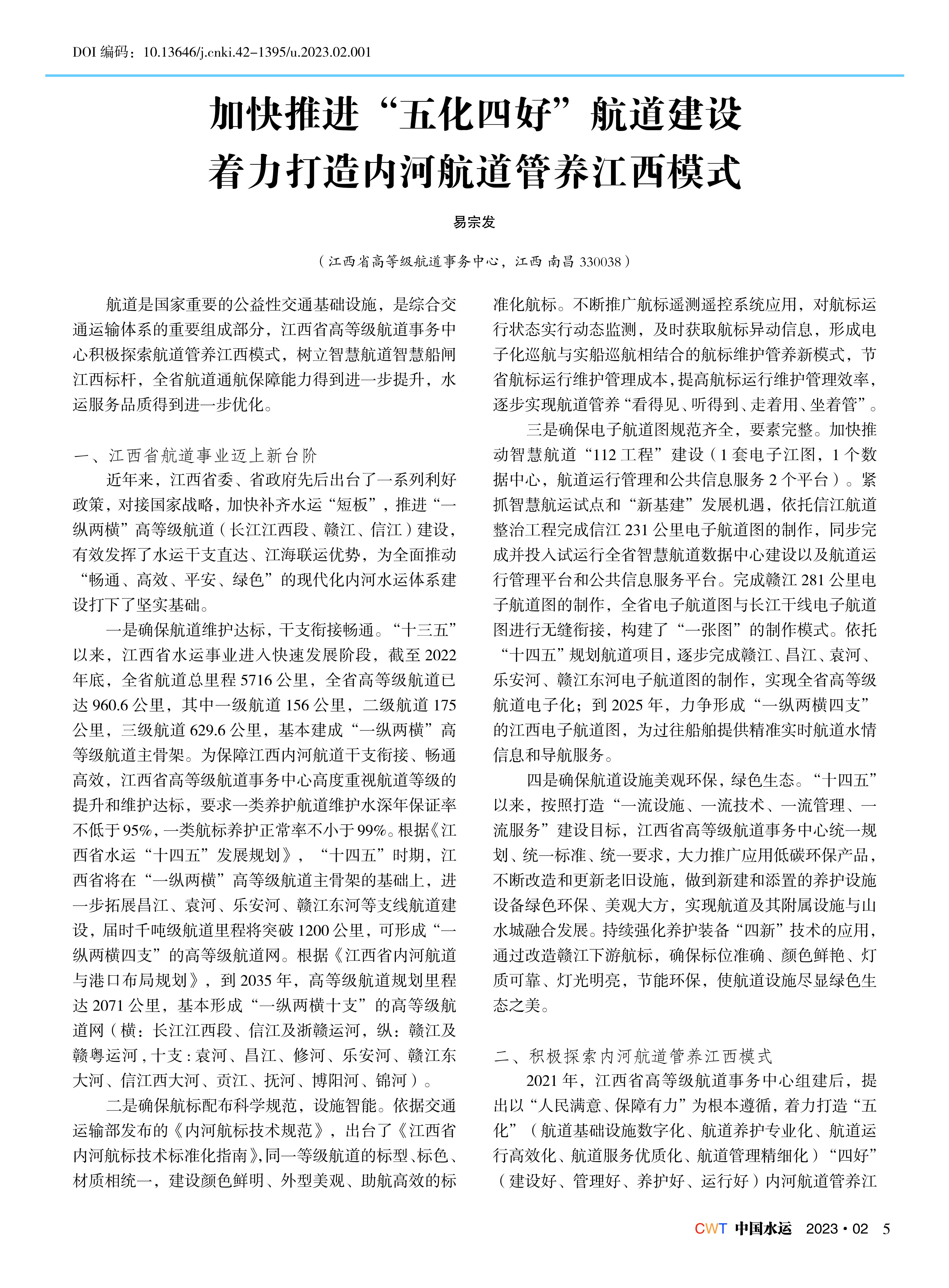 加快推进“五化四好”航道建设着力打造内河航道管养江西模式
