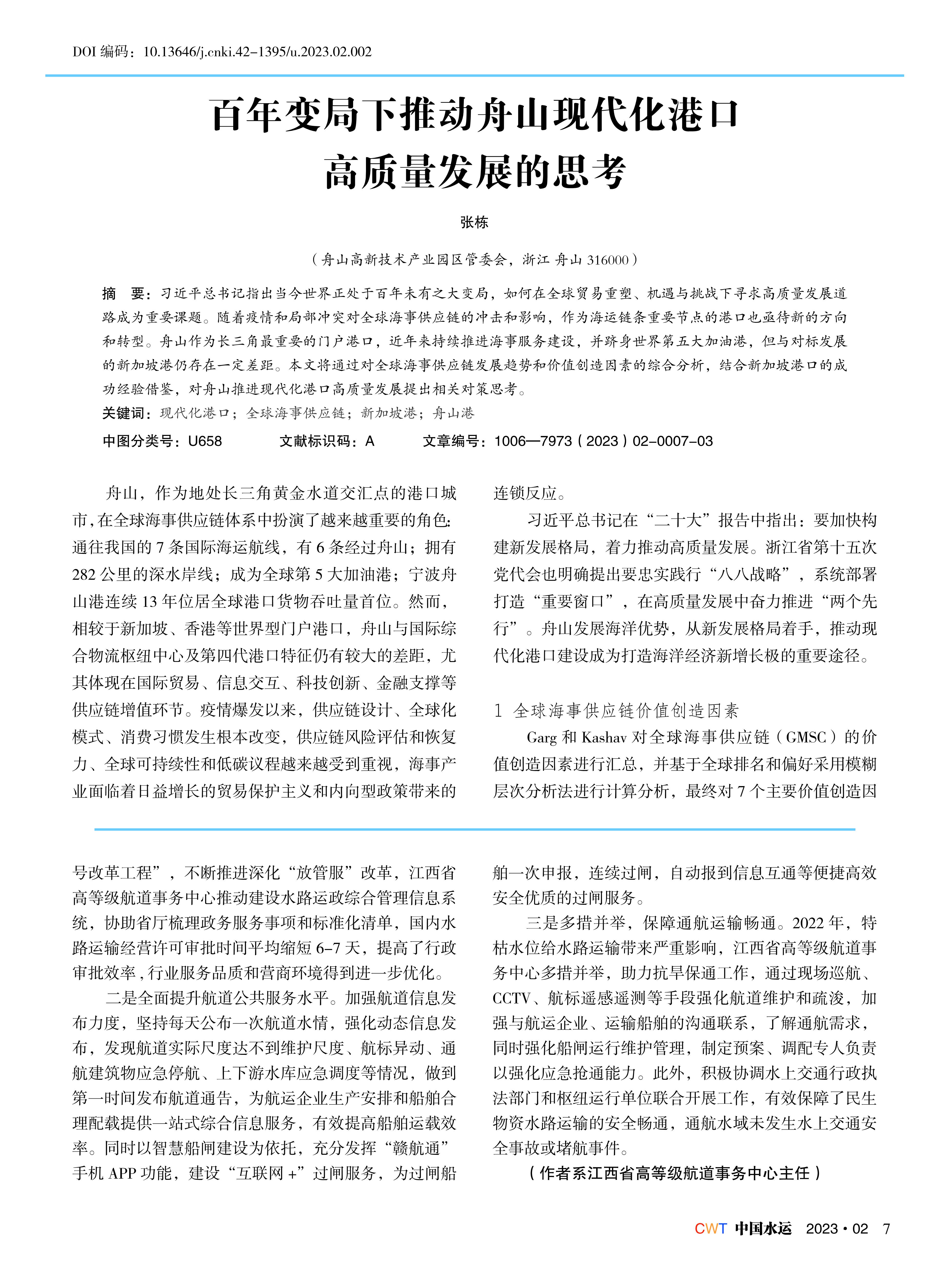 百年变局下推动舟山现代化港口高质量发展的思考