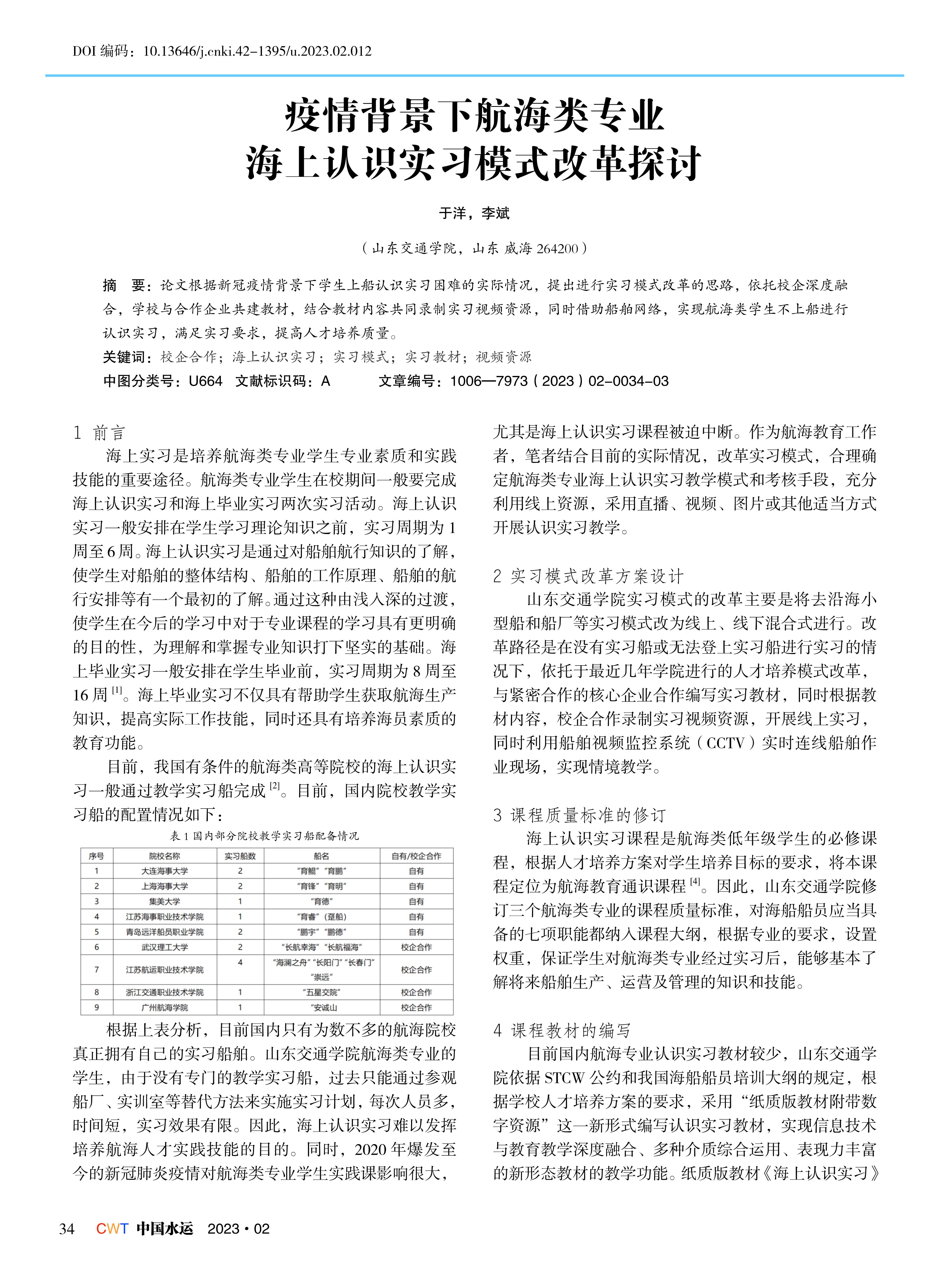 疫情背景下航海类专业海上认识实习模式改革探讨