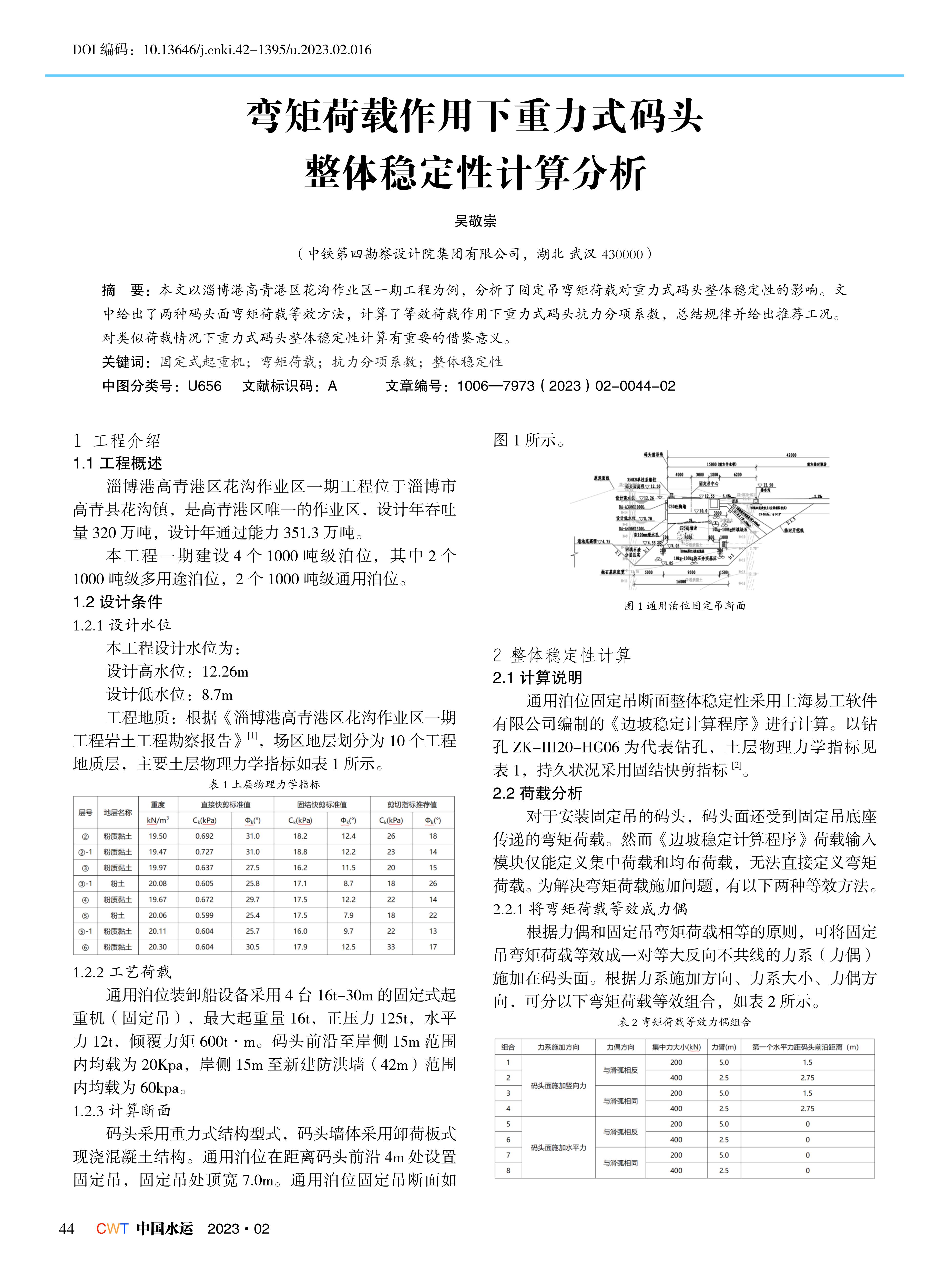 弯矩荷载作用下重力式码头整体稳定性计算分析
