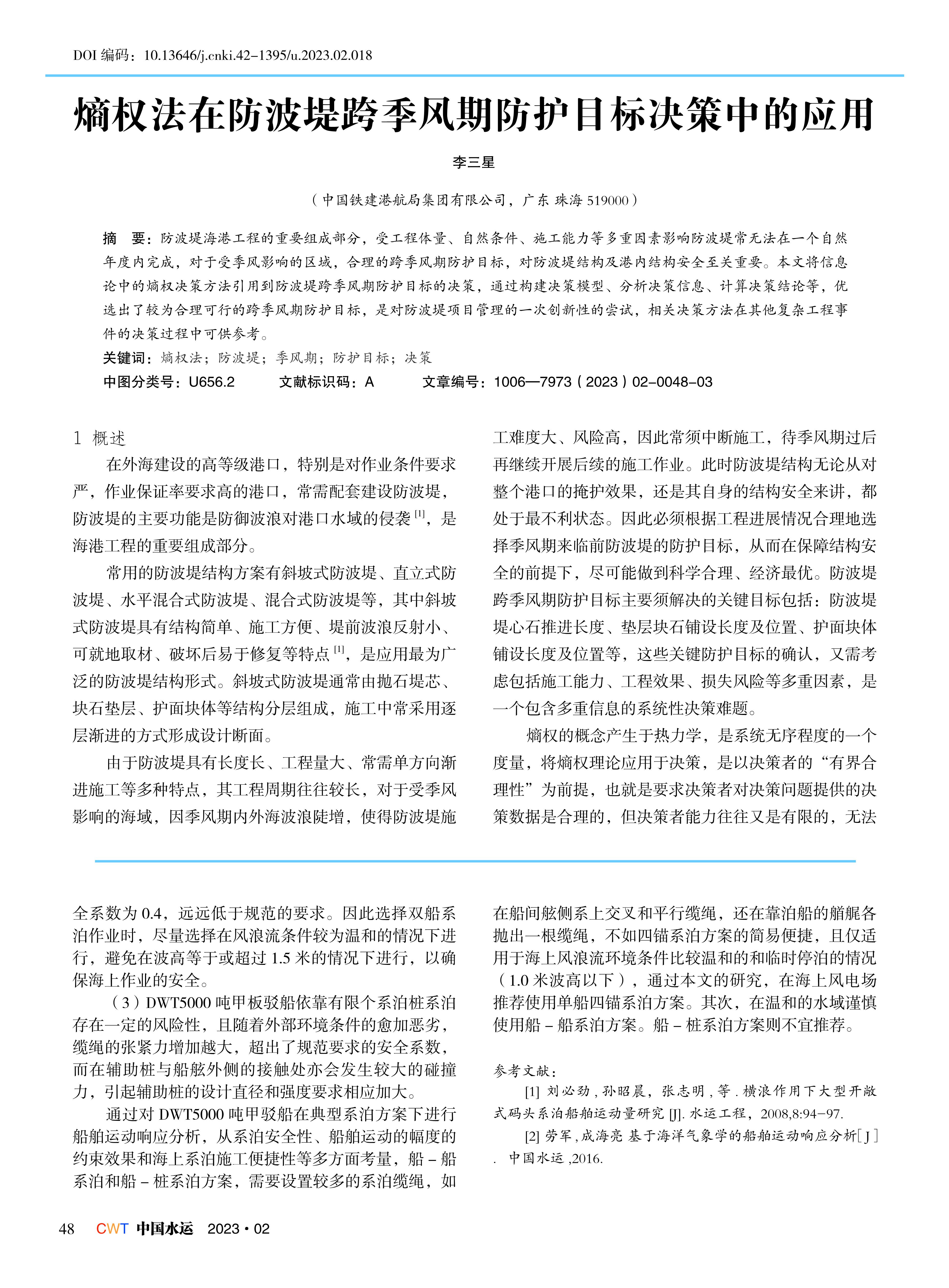 熵权法在防波堤跨季风期防护目标决策中的应用