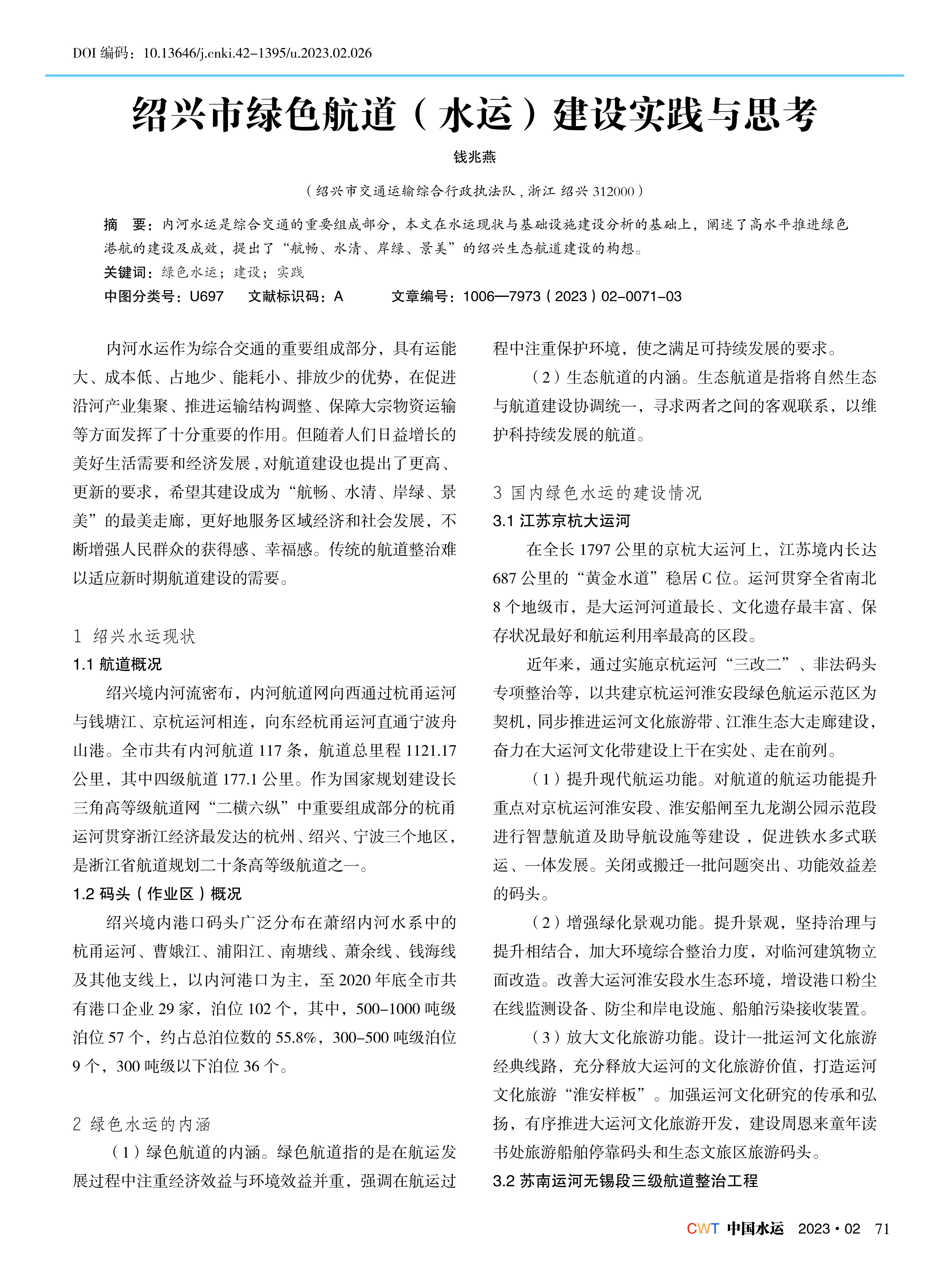 绍兴市绿色航道(水运)建设实践与思考