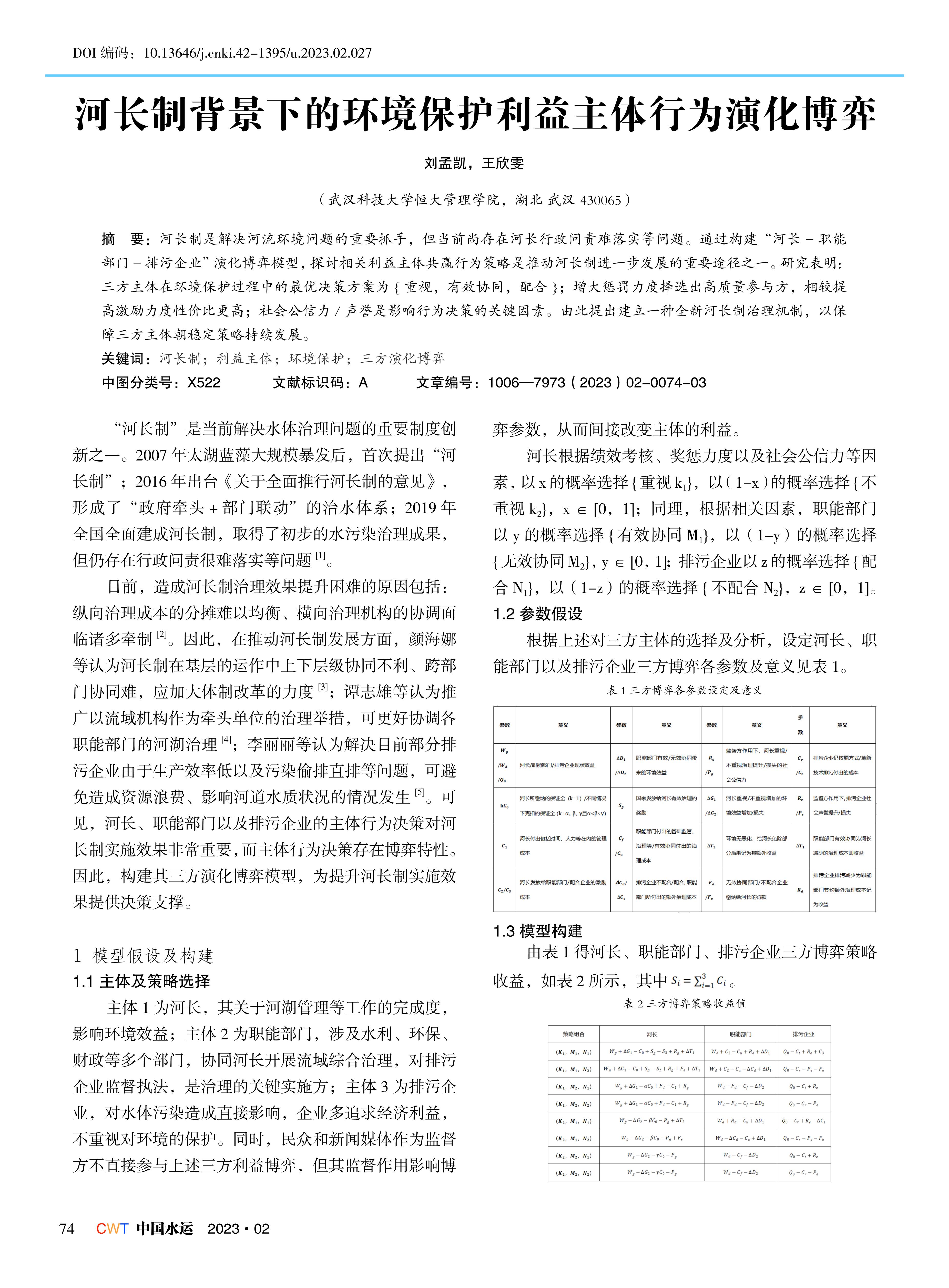 河长制背景下的环境保护利益主体行为演化博弈