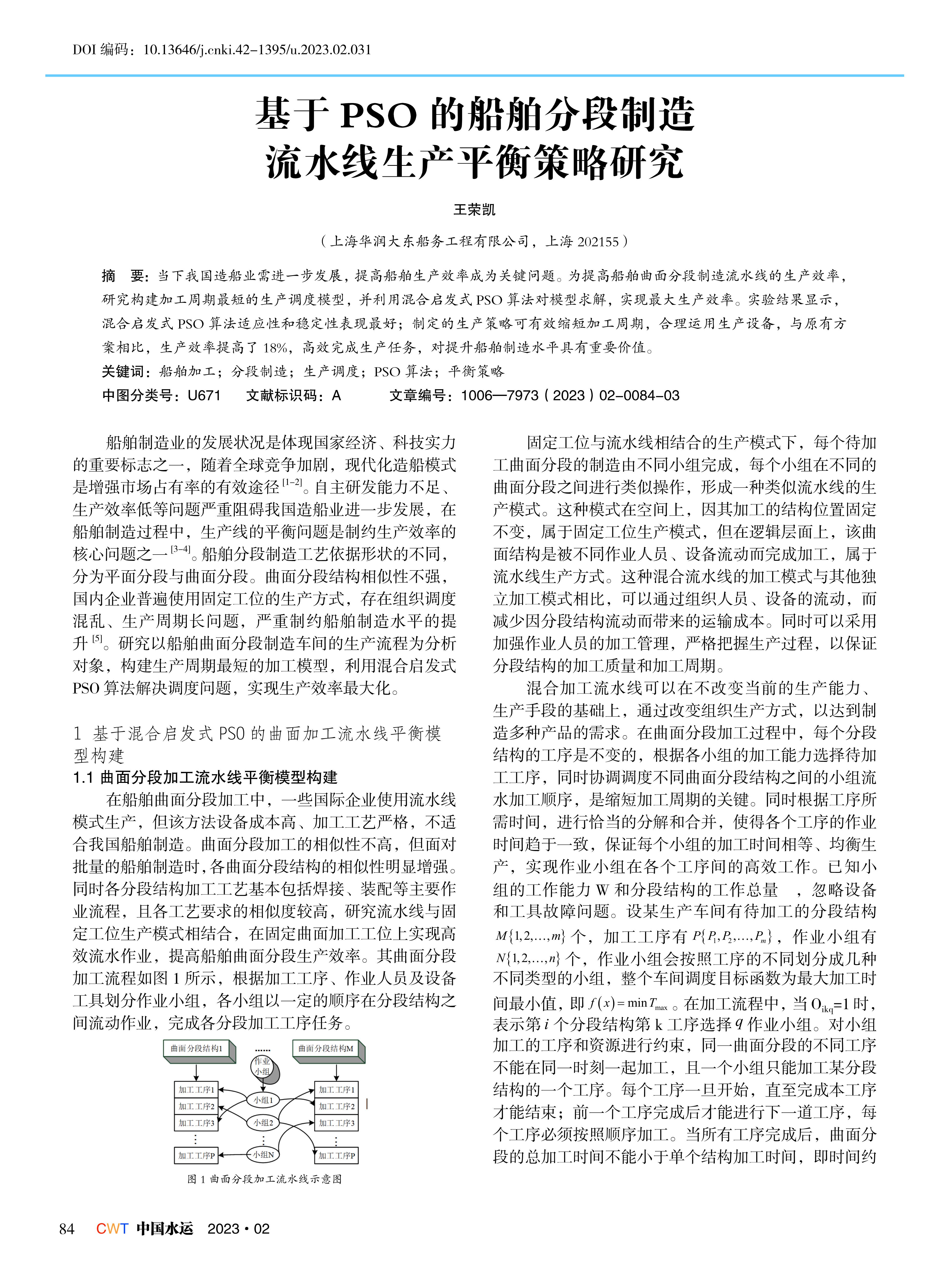 基于PSO的船舶分段制造流水线生产平衡策略研究