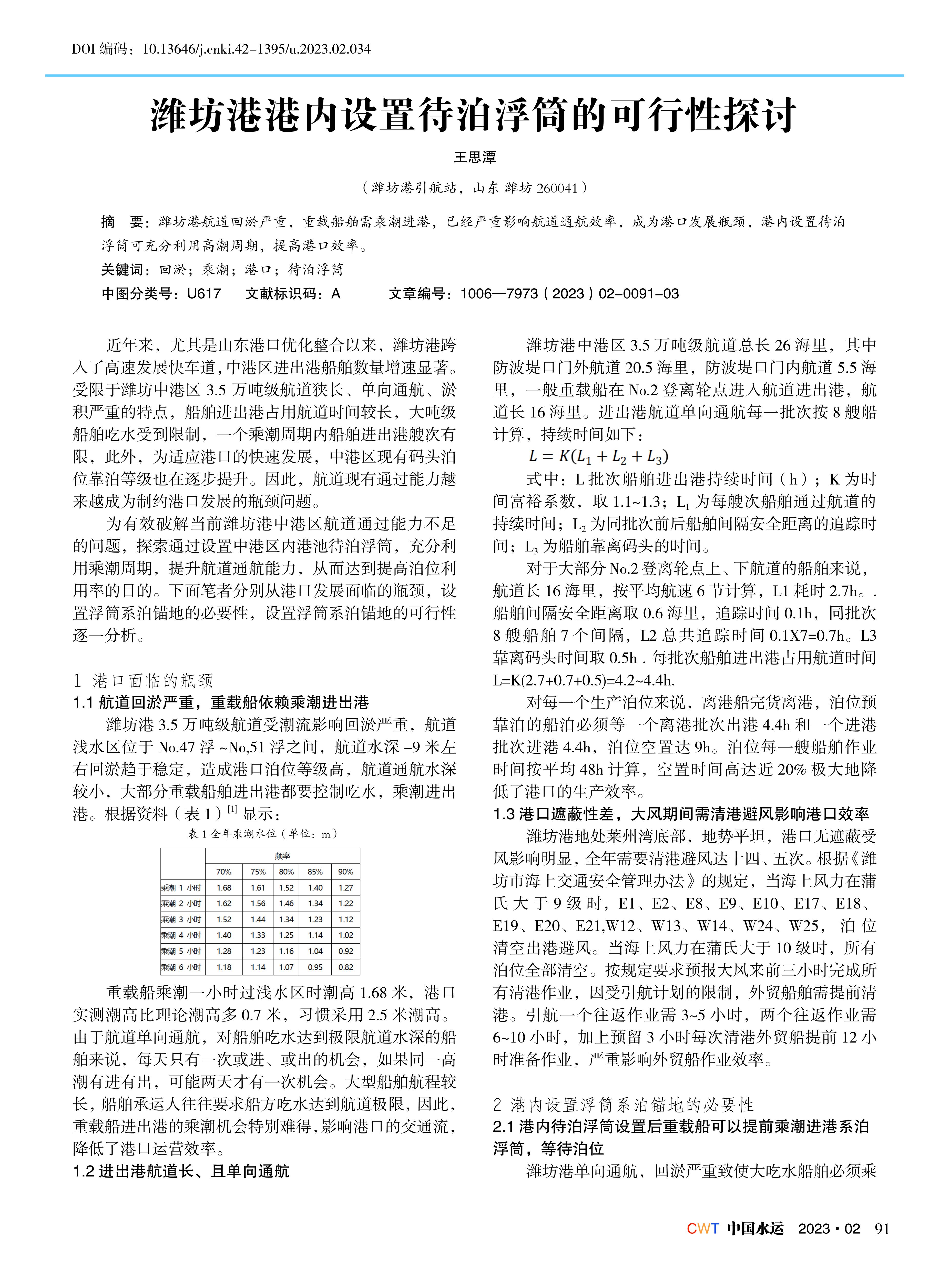 潍坊港港内设置待泊浮筒的可行性探讨