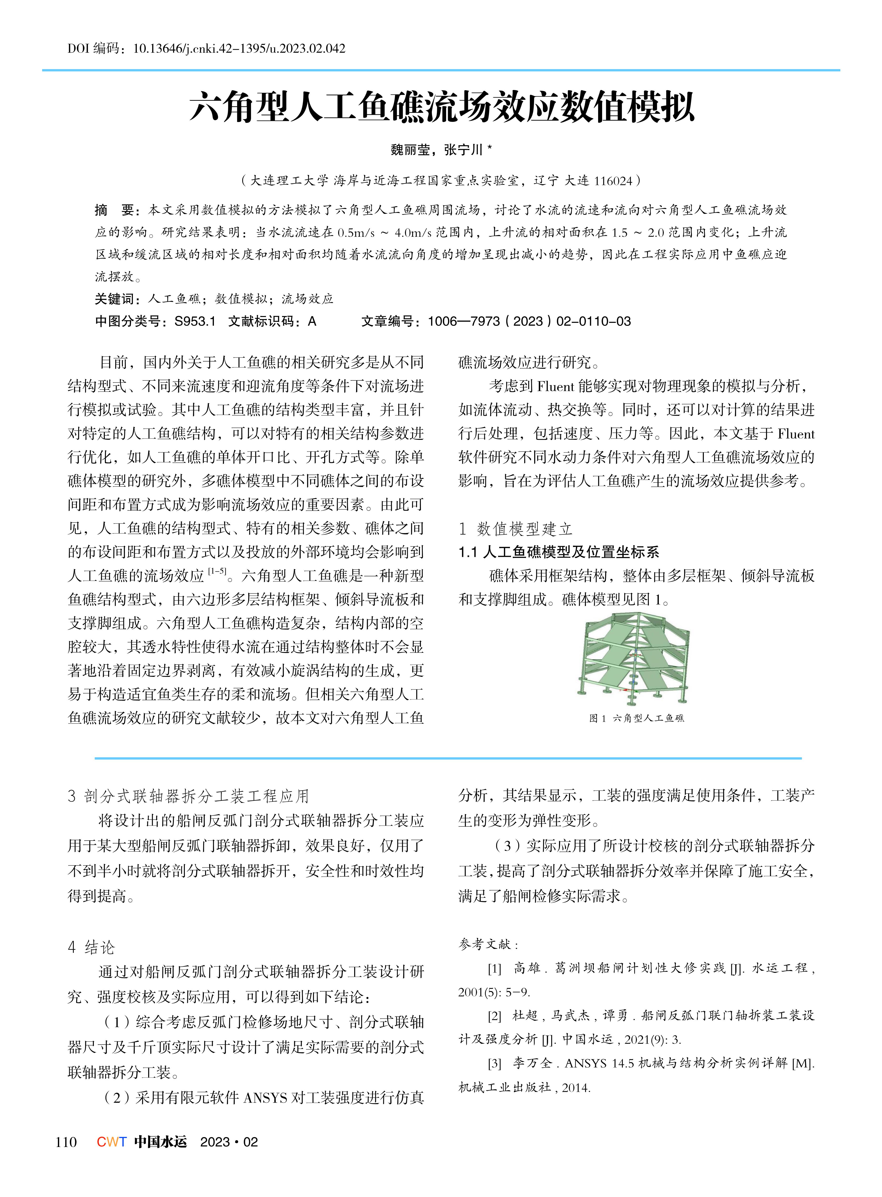 六角型人工鱼礁流场效应数值模拟