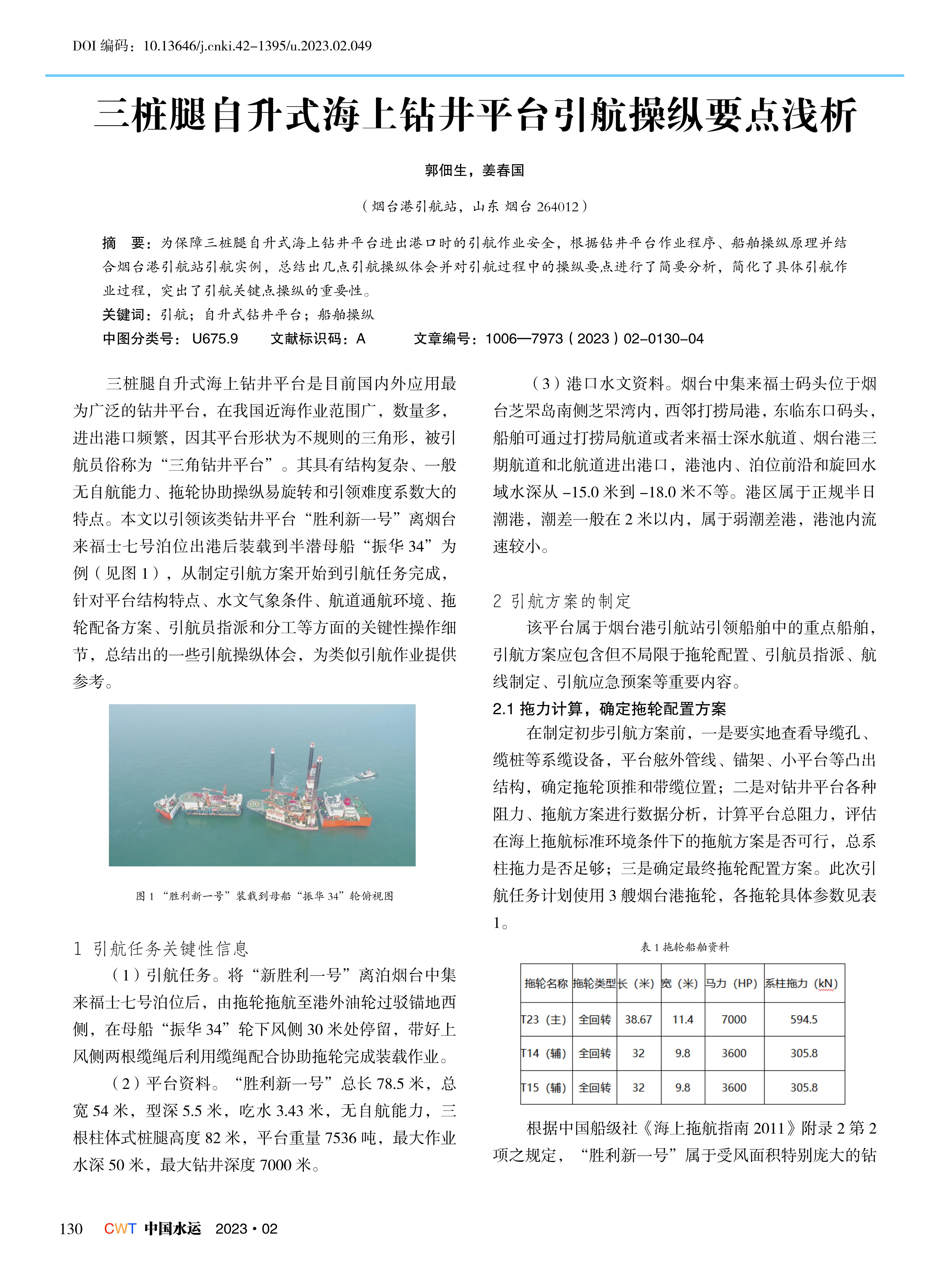 三桩腿自升式海上钻井平台引航操纵要点浅析