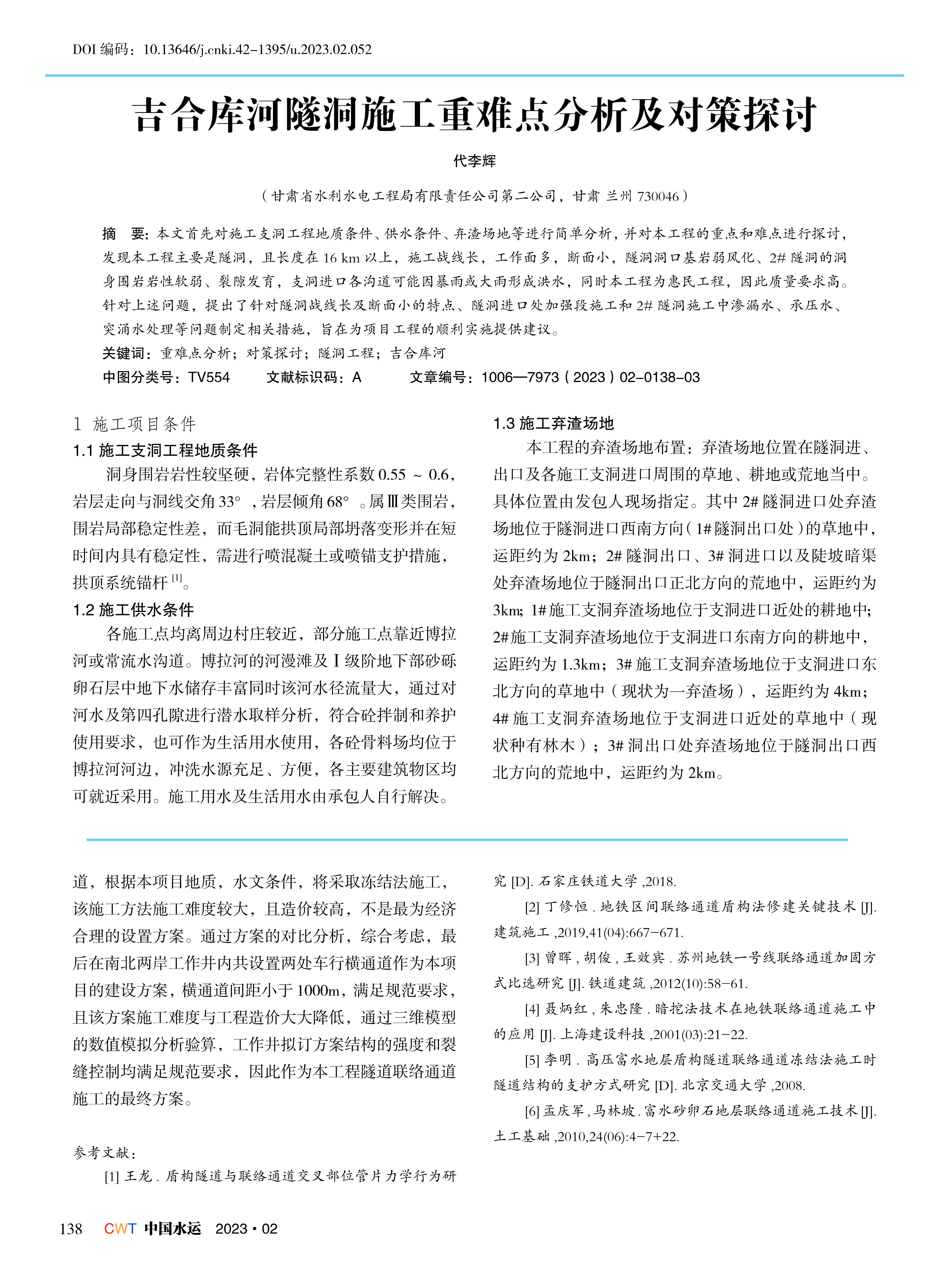吉合库河隧洞施工重难点分析及对策探讨