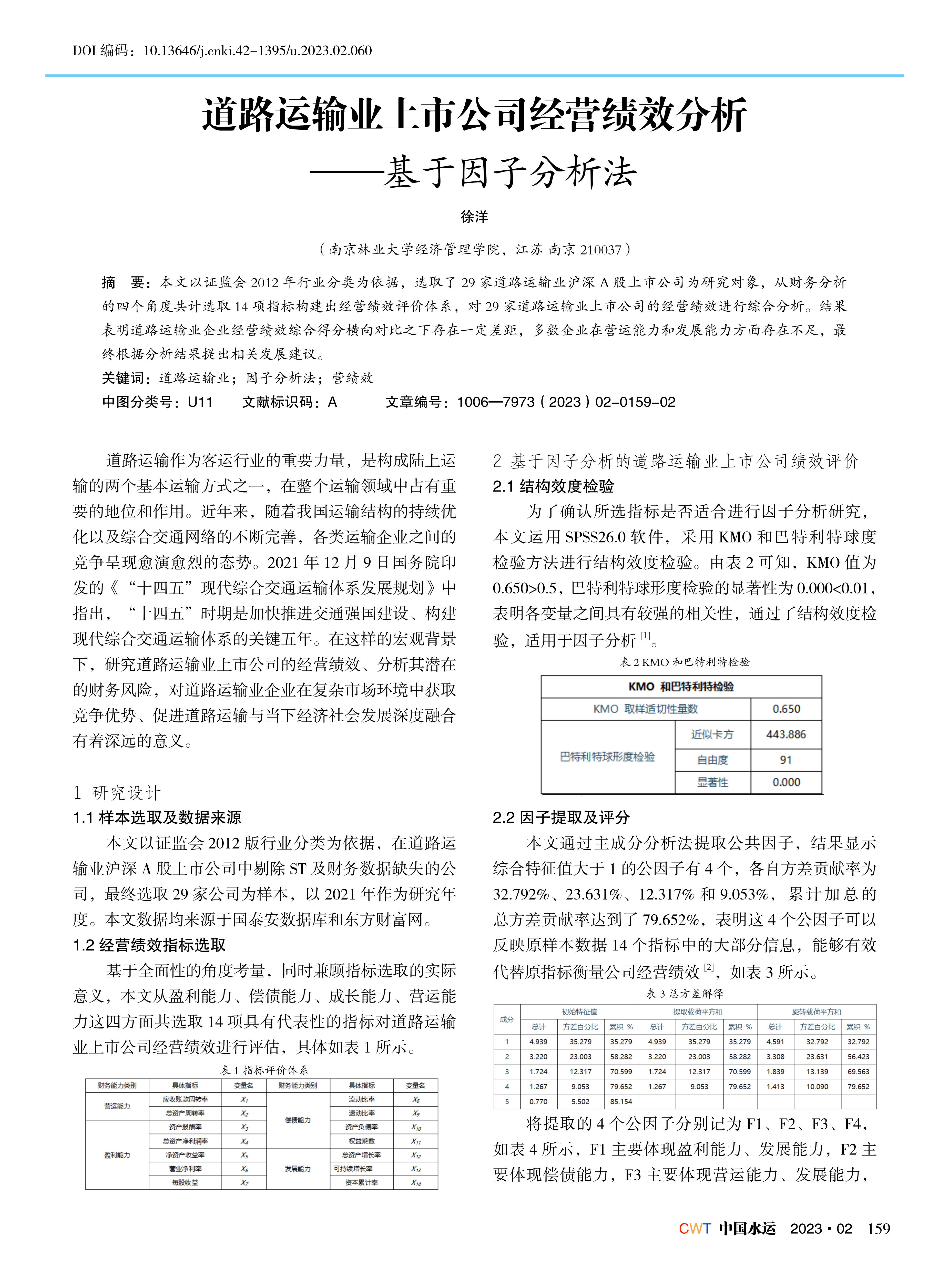 道路运输业上市公司经营绩效分析——基于因子分析法