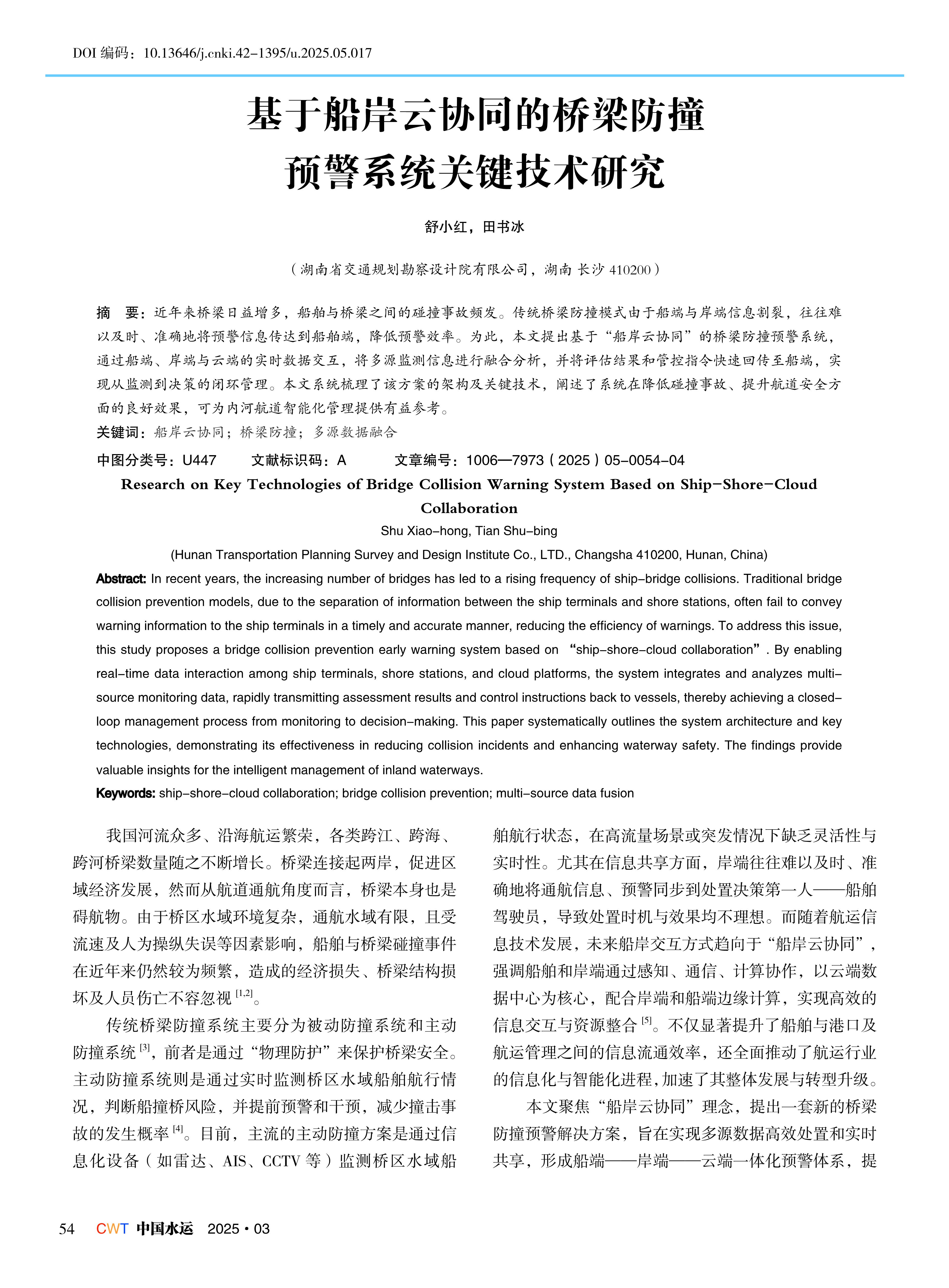 基于船岸云协同的桥梁防撞预警系统关键技术研究