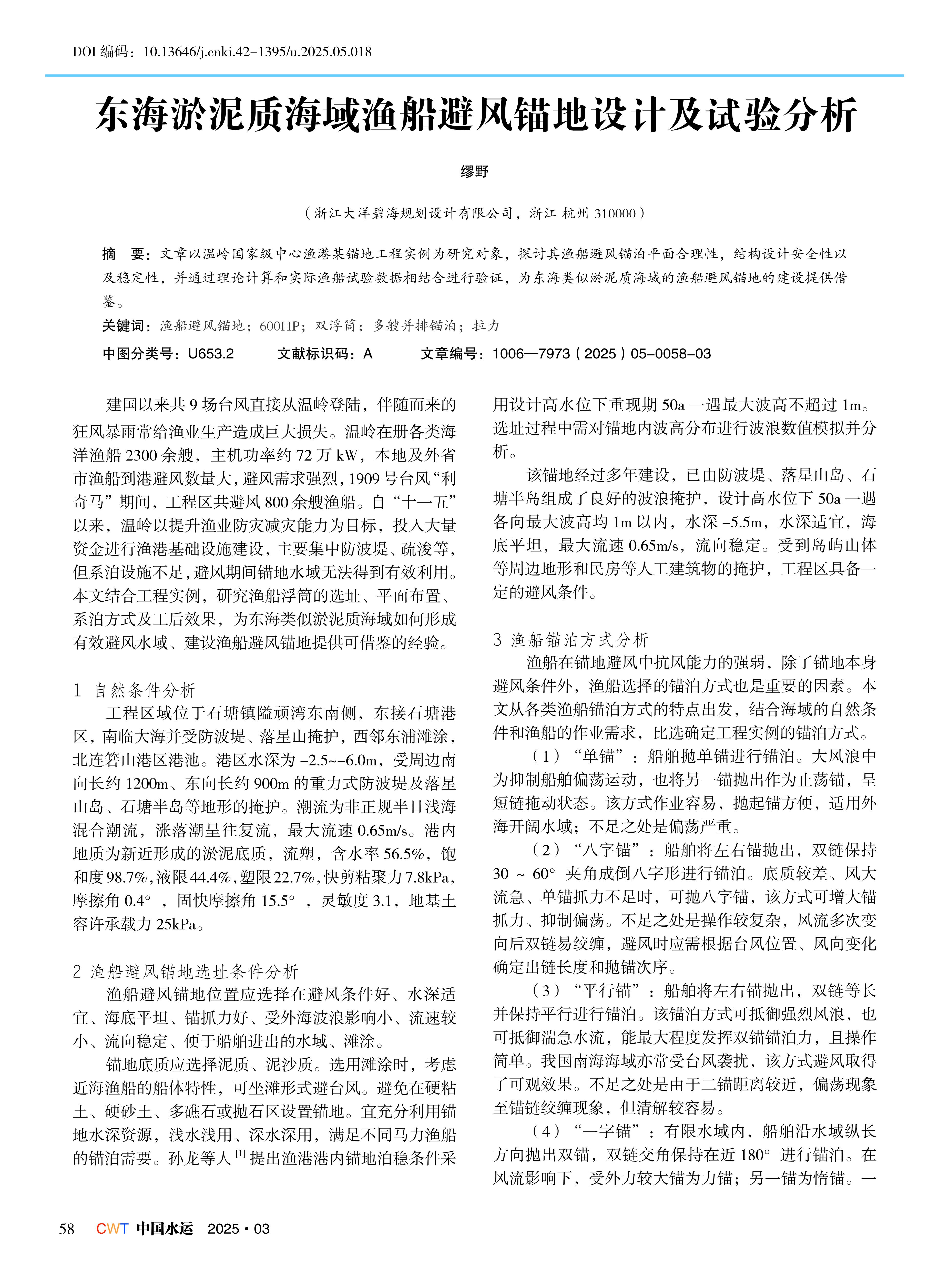 东海淤泥质海域渔船避风锚地设计及试验分析