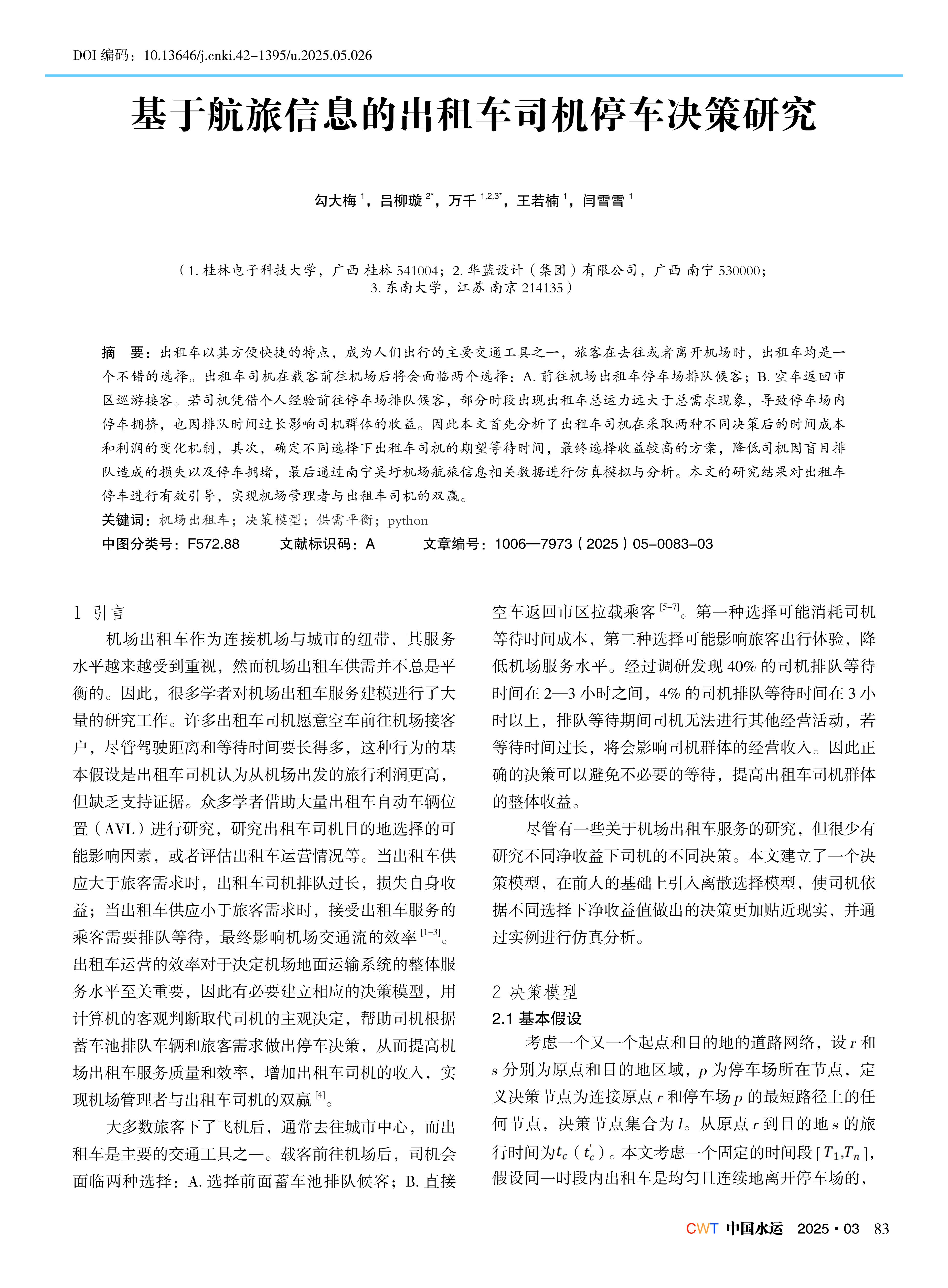 基于航旅信息的出租车司机停车决策研究