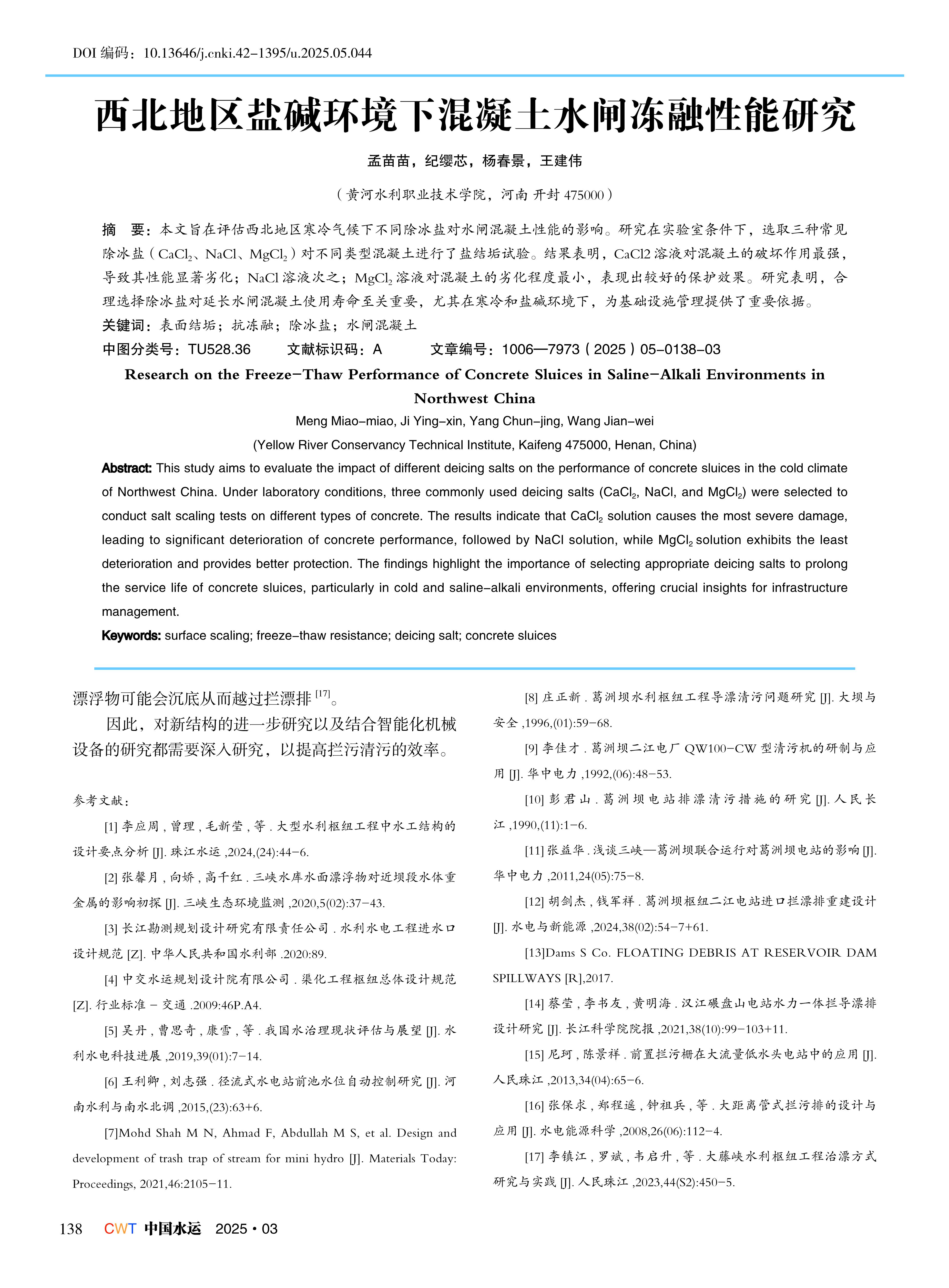 西北地区盐碱环境下混凝土水闸冻融性能研究